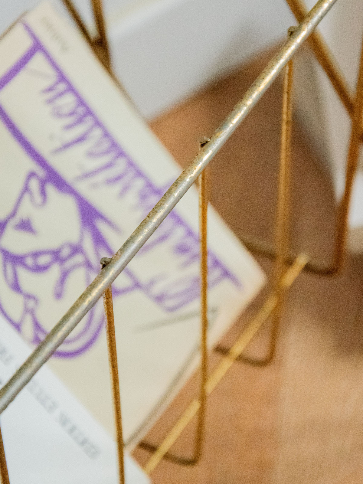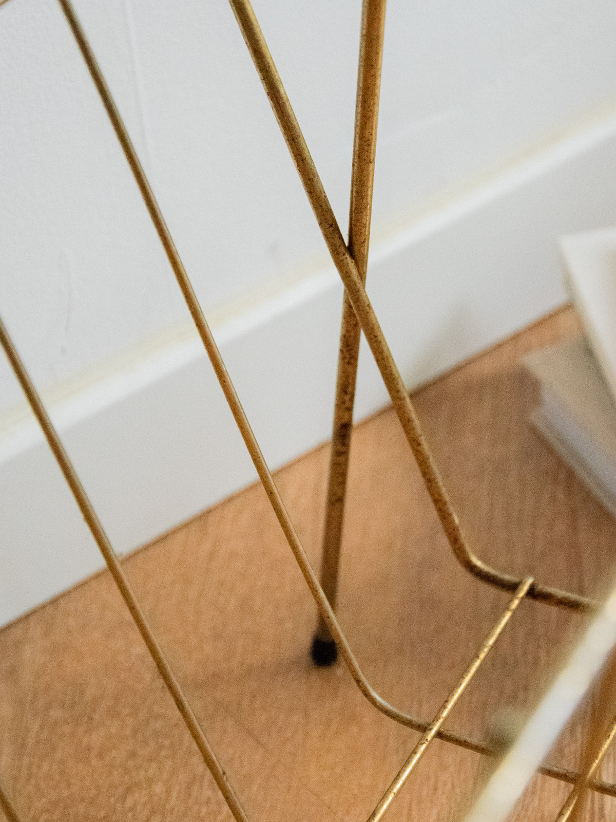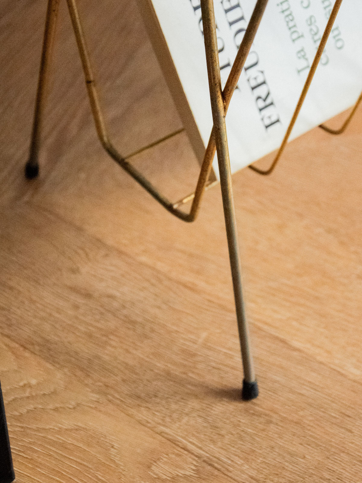 Adoptez ce porte-revues en métal argenté au design sobre et graphique, reposant sur des pieds plastifiés qui protègent le sol; sa silhouette verticale et son faible encombrement accueillent magazines et journaux avec élégance, idéale près d'un canapé, d'un bureau ou dans une entrée lumineuse. Le métal apporte une note contemporaine facile à entretenir et ses proportions compactes optimisent le rangement sans alourdir l'espace. Légères traces de rouille présentes.