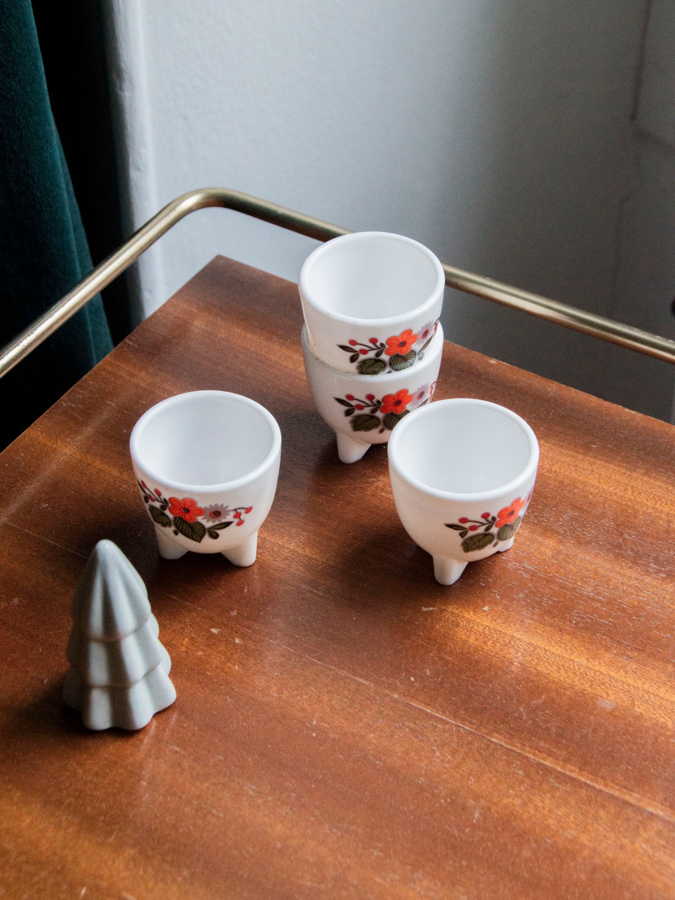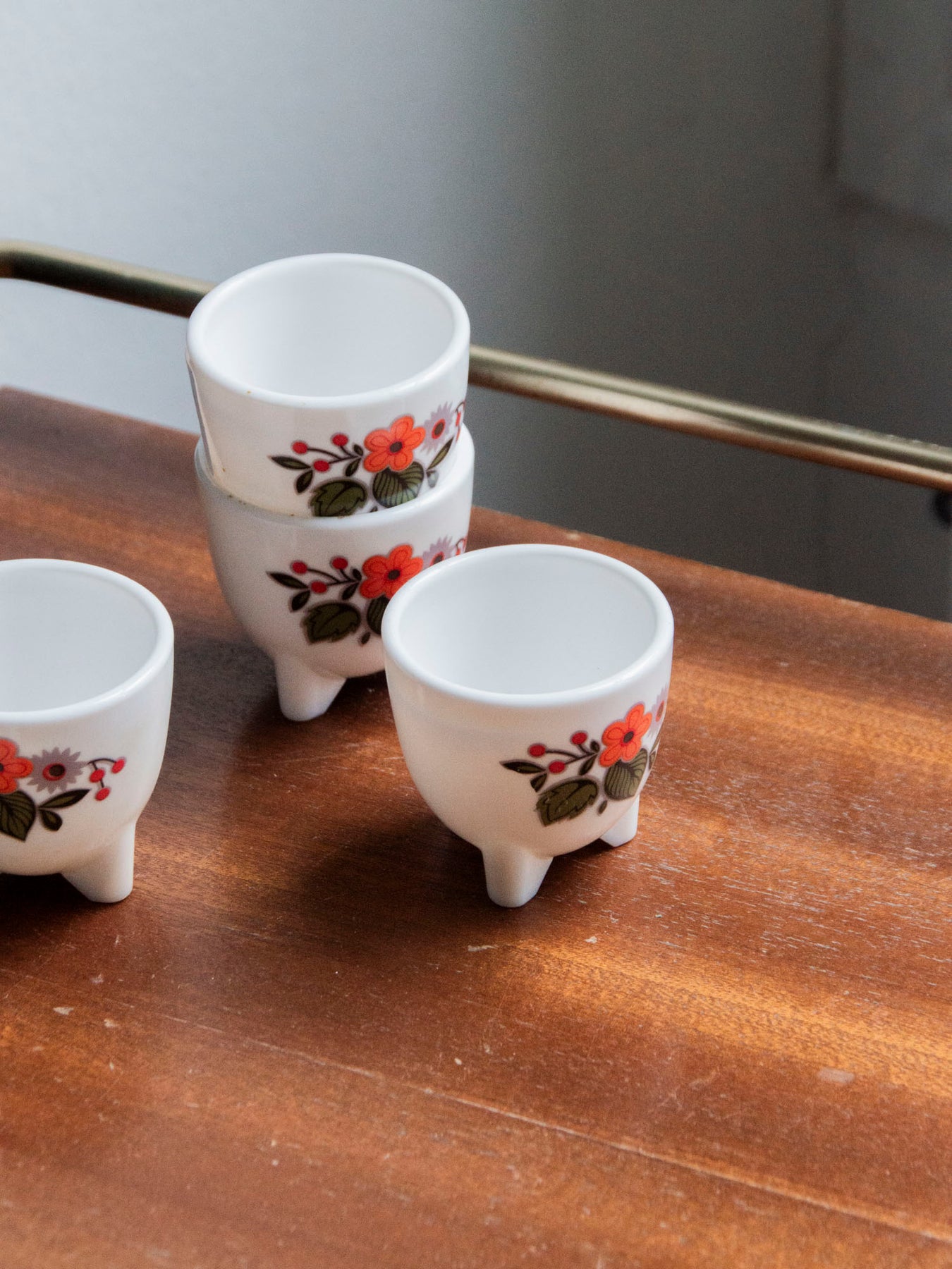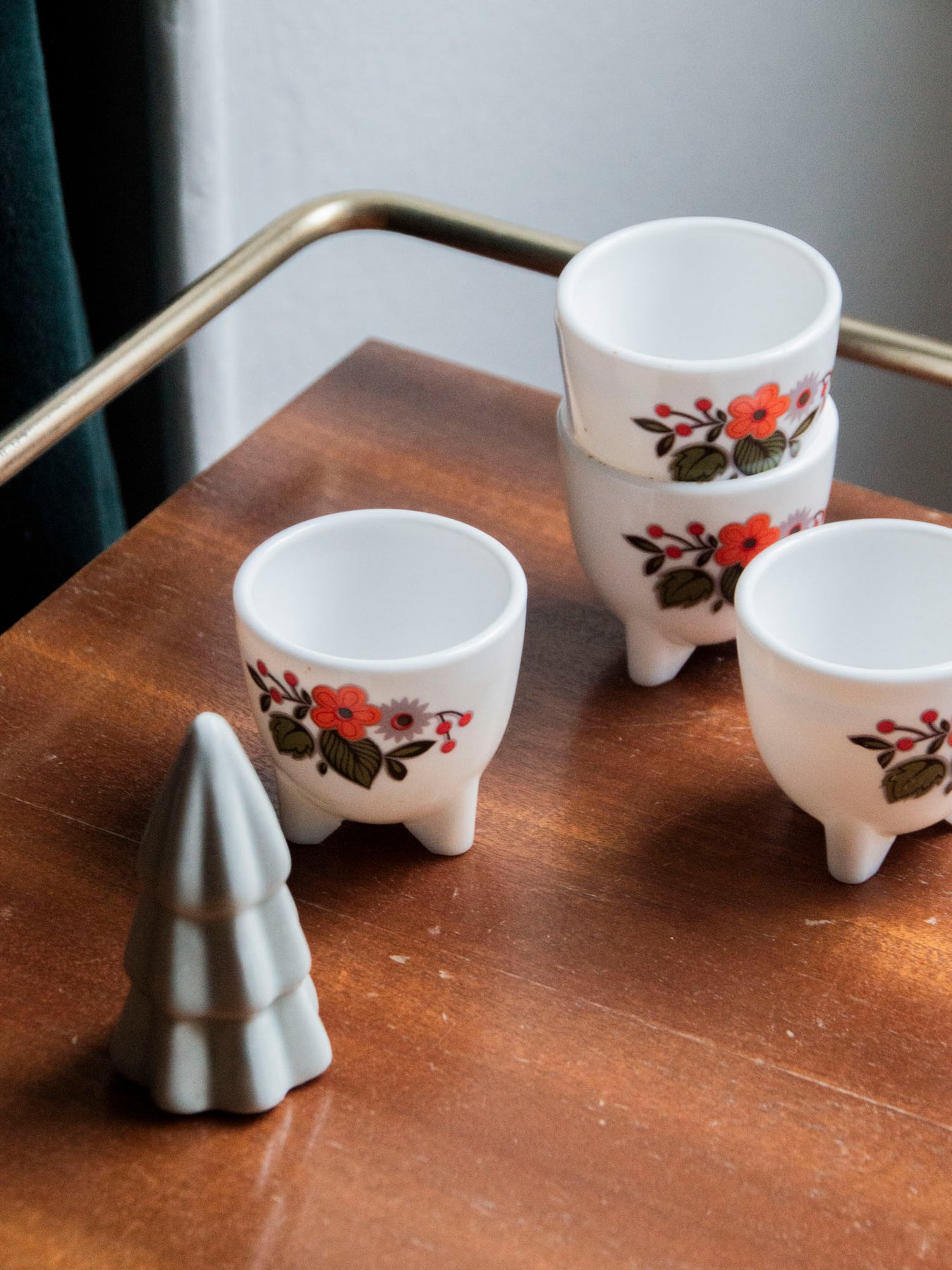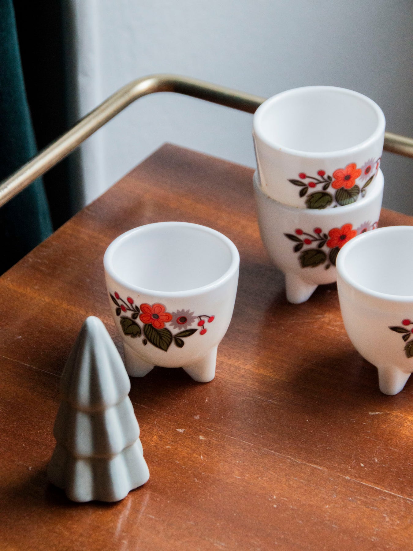 Ajoutez ces coquetiers floraux émaillés blancs à votre table pour un instant petit-déjeuner empreint d'élégance rétro. Leur décor fleuri délicat et leurs petits pieds leur confèrent une silhouette raffinée, idéale pour accompagner des œufs à la coque ou pour composer un centre de table poétique. Le matériau émaillé apporte une finition lumineuse et facile d'entretien, tandis que leur format compact s'intègre aisément aux petits espaces et aux moments partagés. Parfaits pour instaurer une ambiance matinale charmante et conviviale.