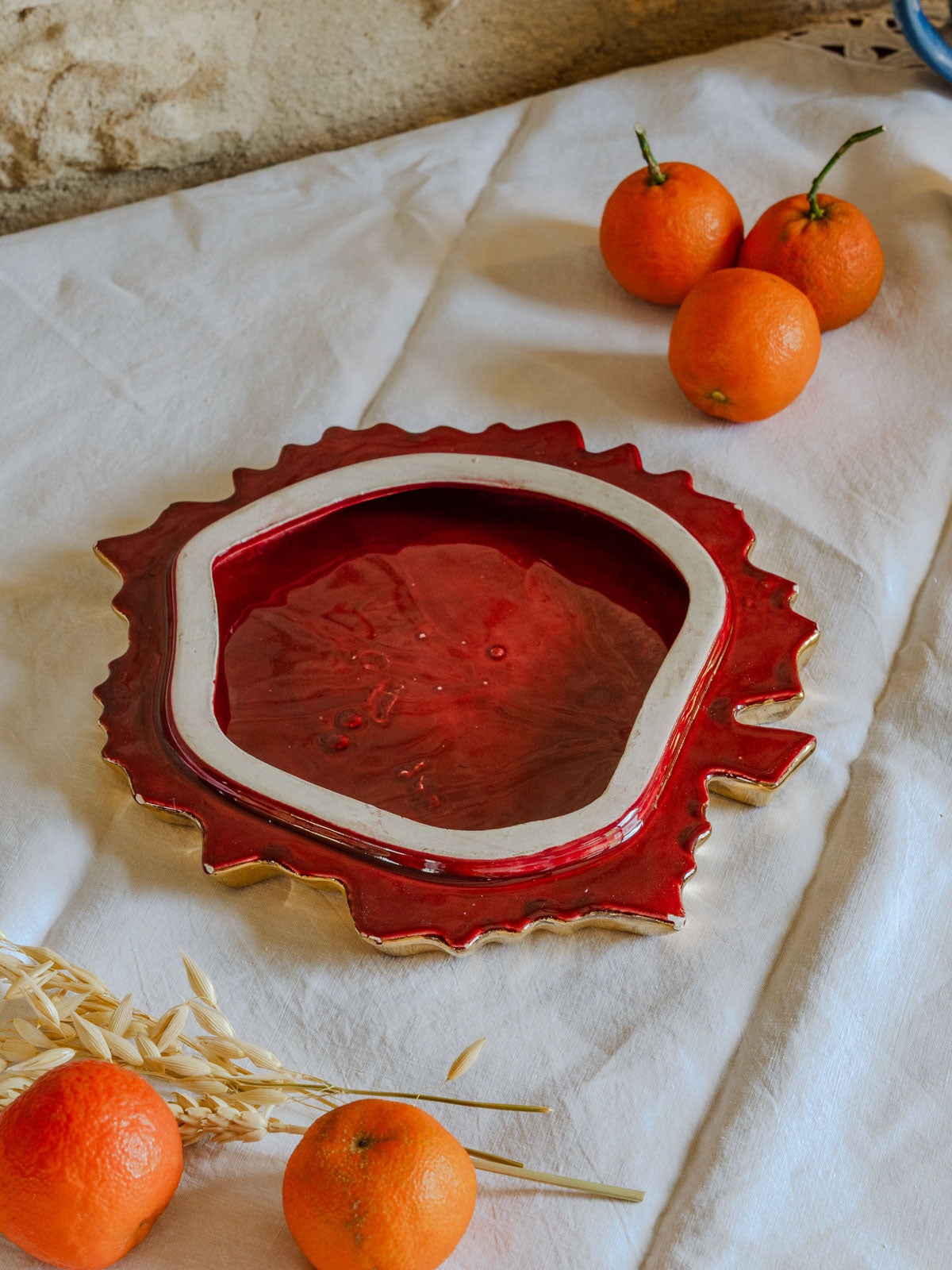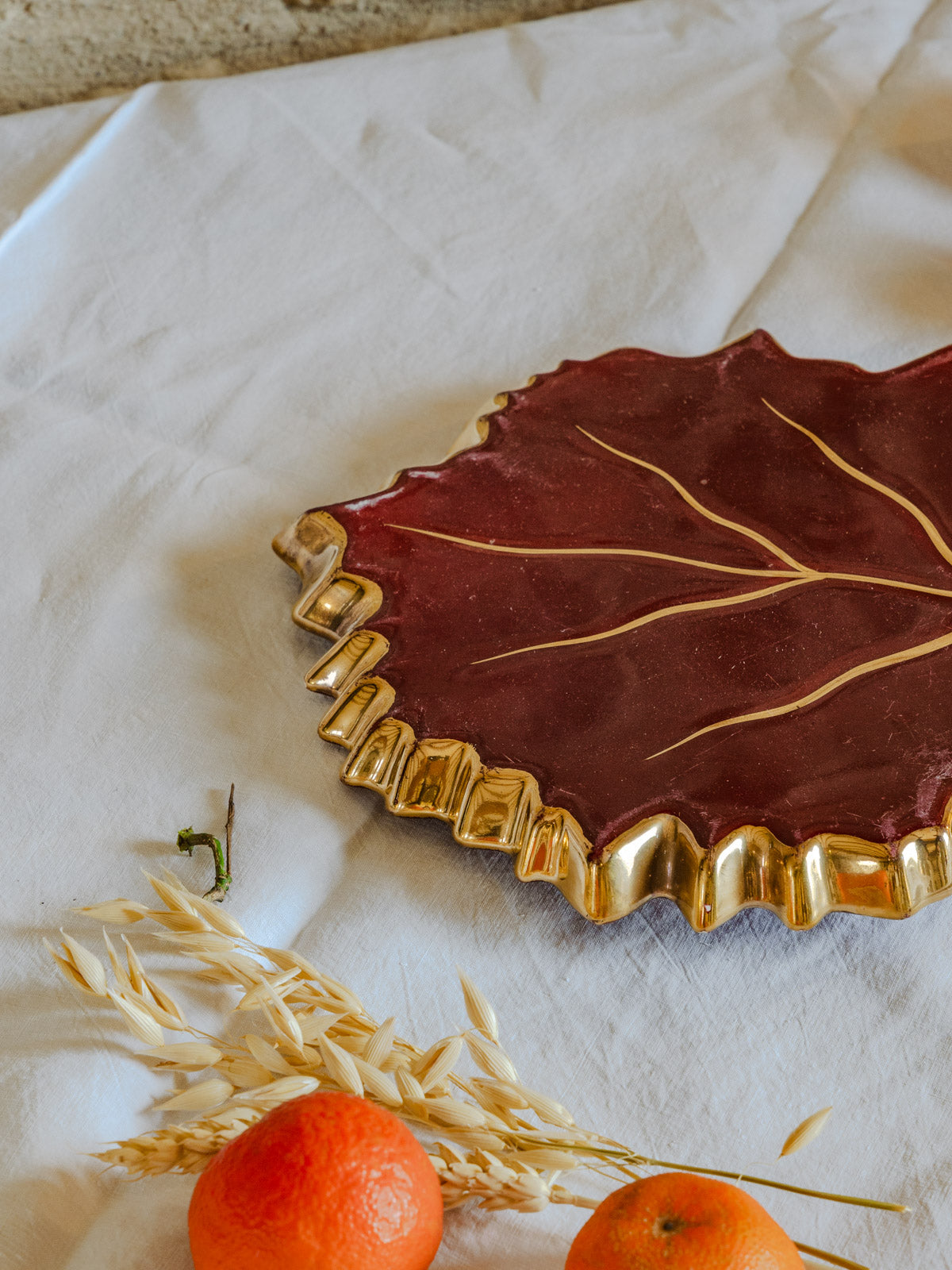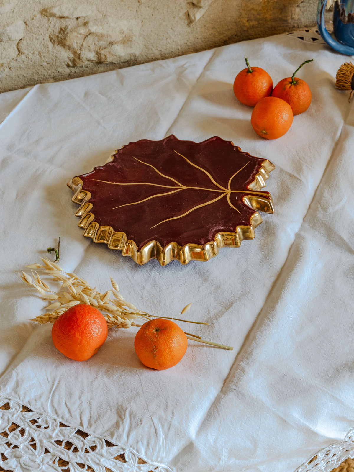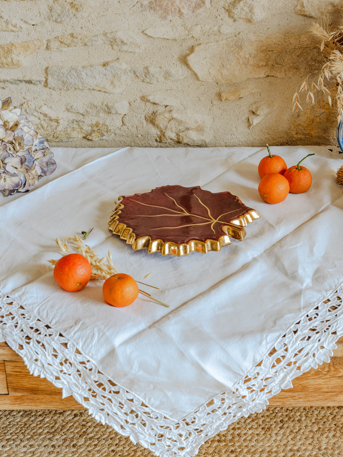 Ajoutez une touche rétro à votre table avec ce dessous de plat vintage en faïence vernissée, rehaussé d'un liseré doré délicat en forme de feuille. Sa couleur lit de vin apporte profondeur et chaleur, tandis que son format compact permet de poser casseroles, plats ou théières sans alourdir la mise en place. Élégant et fonctionnel, il protège les surfaces tout en signant une ambiance raffinée et conviviale.