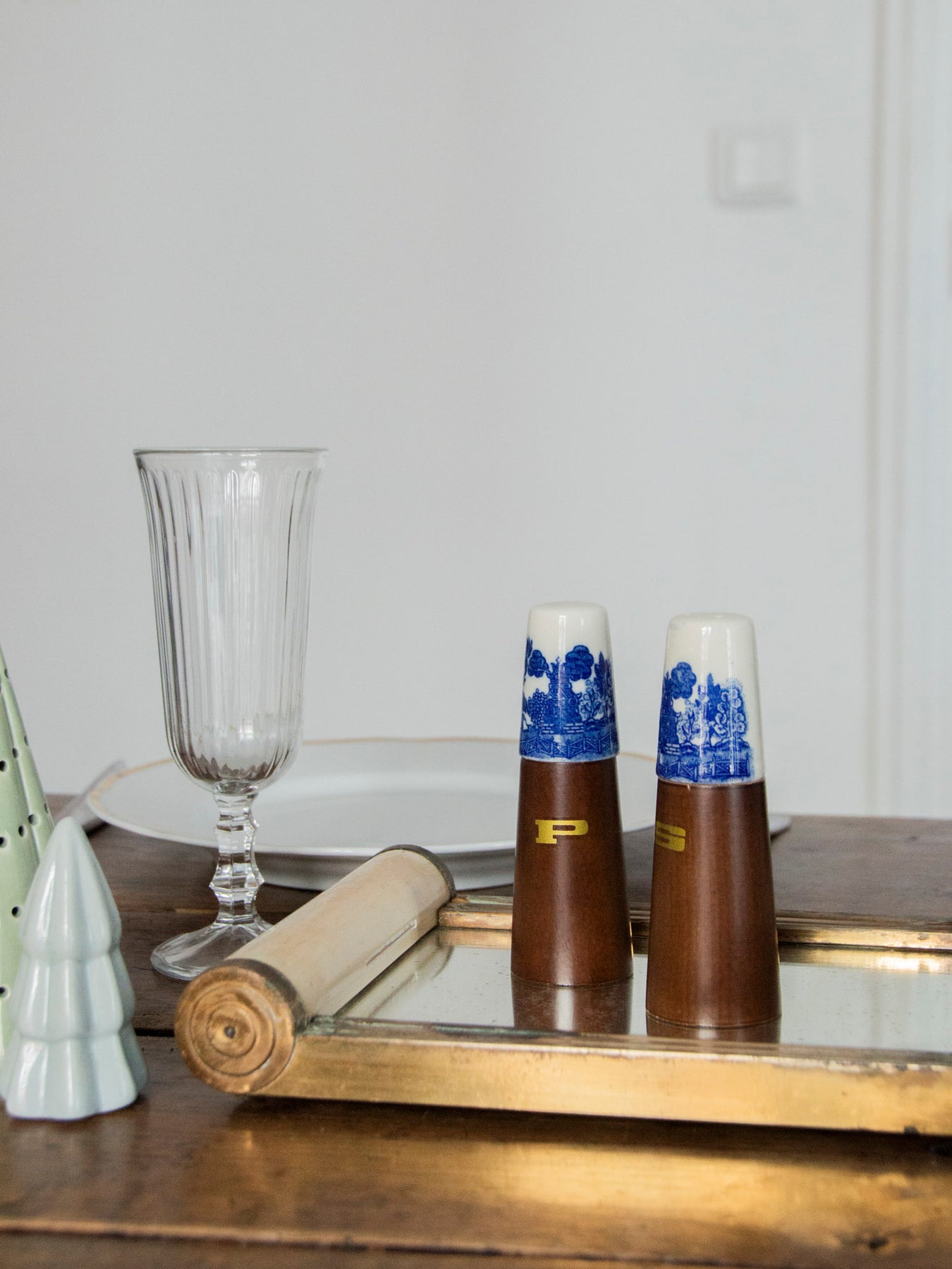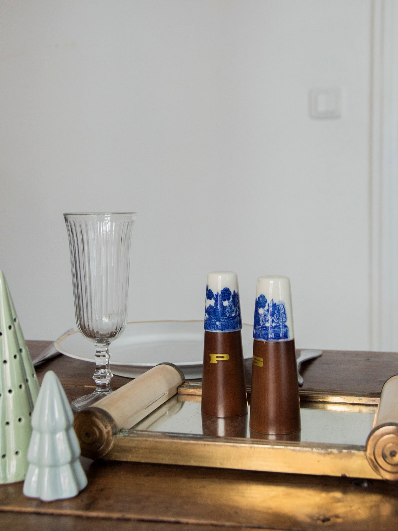 Adoptez ce duo salière et poivrière en faïence et bois, aux silhouettes hautes et élancées rehaussées de lettres manuscrites qui racontent un détail artisanal. La faïence lumineuse contraste avec la chaleur du bois pour un service de table à la fois sobre et poétique ; leur format confère une bonne prise en main et se prête aux repas quotidiens comme aux tables d'invités. Idéal pour une ambiance conviviale et raffinée, il apporte une touche d'authenticité écrite à votre cuisine.