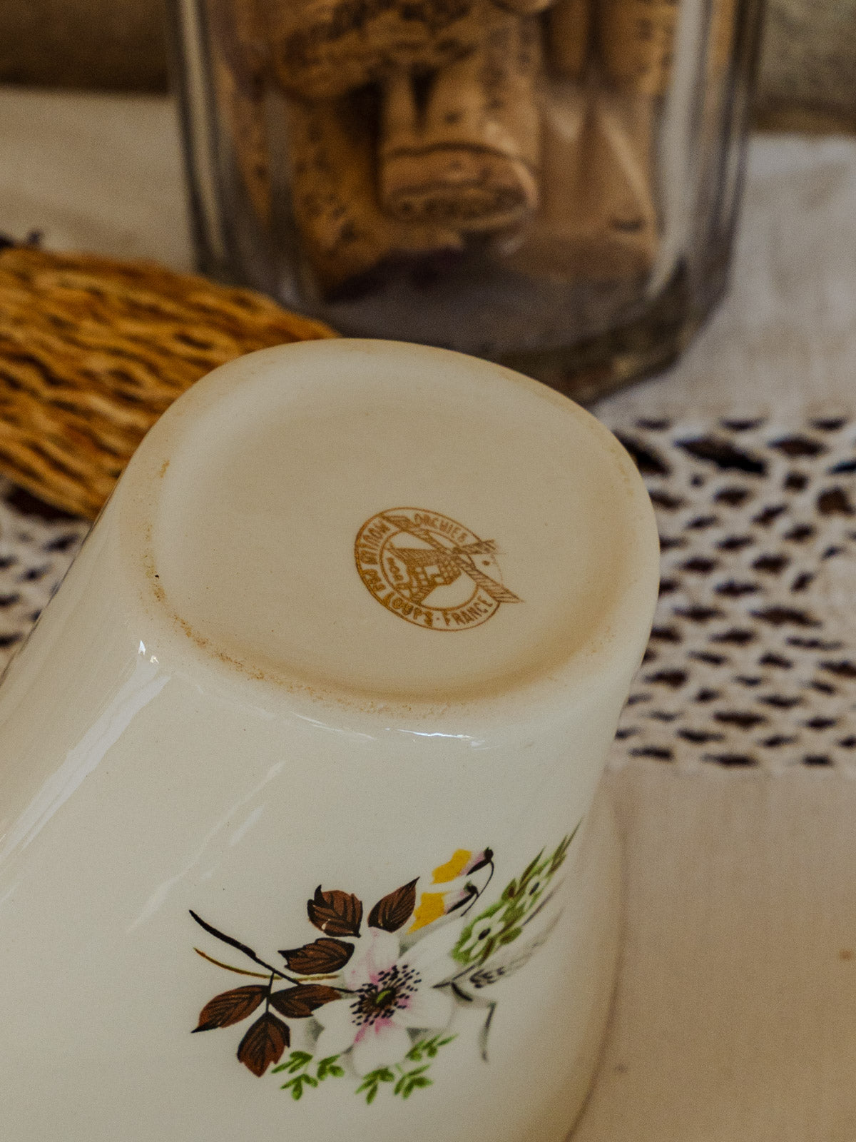 Invitez une touche de charme avec ce service en faïence de Moulin des Loups, blanc délicatement décoré de motifs floraux marron et verts et rehaussé d'un liseré doré. L'ensemble comprend deux plats (ovale et rond), une saucière et sept assiettes, offrant des proportions adaptées aux repas en famille ou aux tables d'invités. Sa matière chaleureuse et son dessin vintage apportent une ambiance élégante et accueillante.