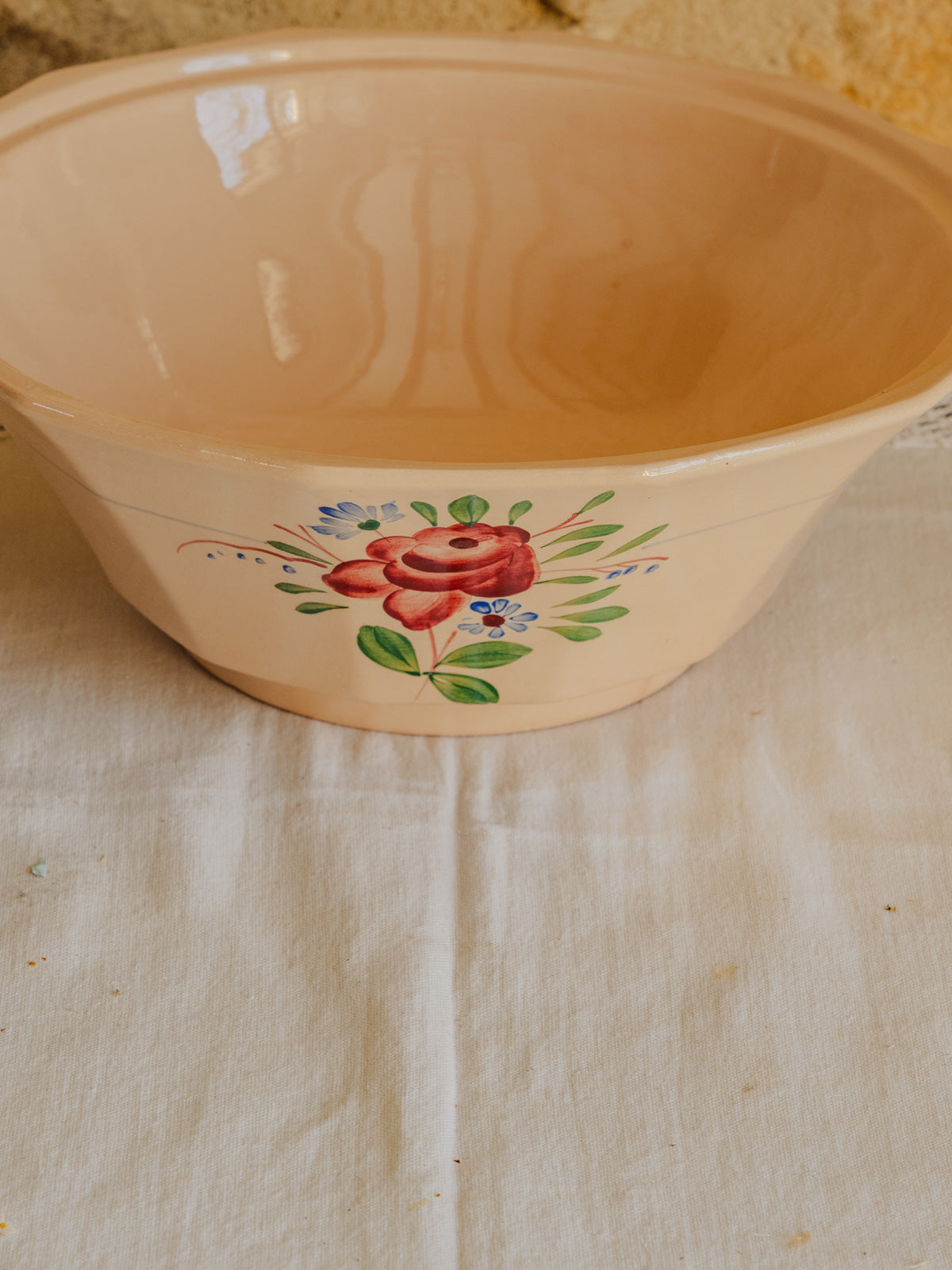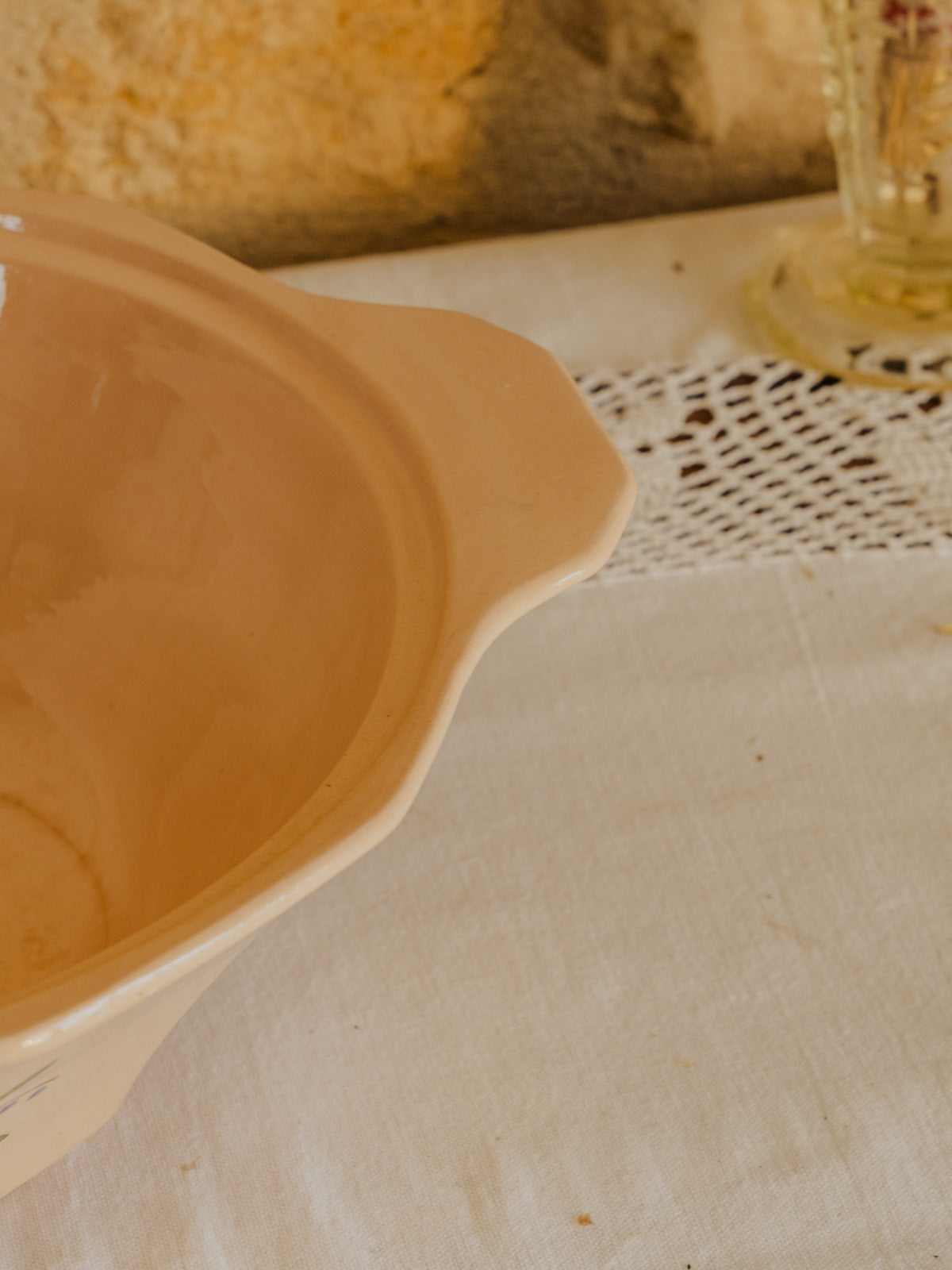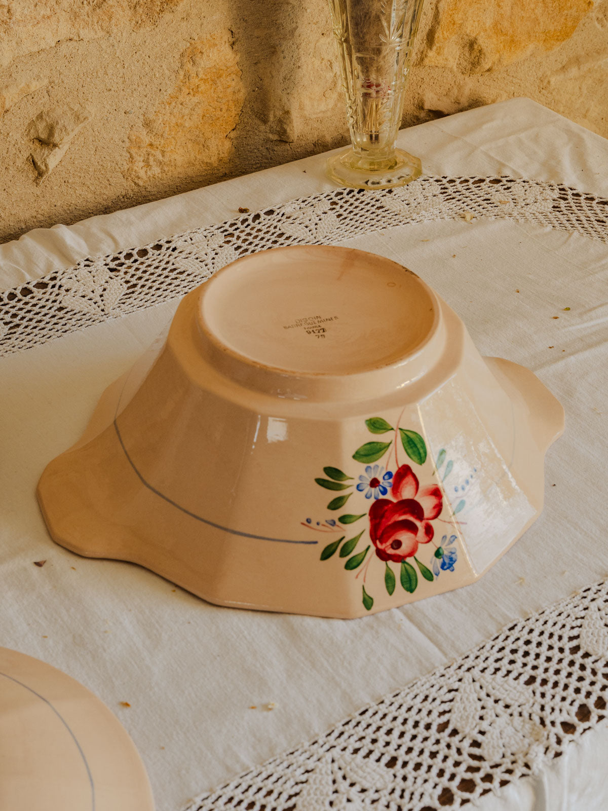 Apportez une touche délicate à votre table avec cette soupière en faïence rose poudré, ornée de motifs floraux roses et verts soulignés de petits détails bleus. Dotée d'un couvercle et de proportions conviviales, elle se prête aussi bien au service de soupes et plats mijotés qu'à la présentation raffinée d'un buffet. Sa glaçure lumineuse offre une présence chaleureuse et discrète, capable d'habiller une table champêtre comme une mise en scène plus contemporaine.