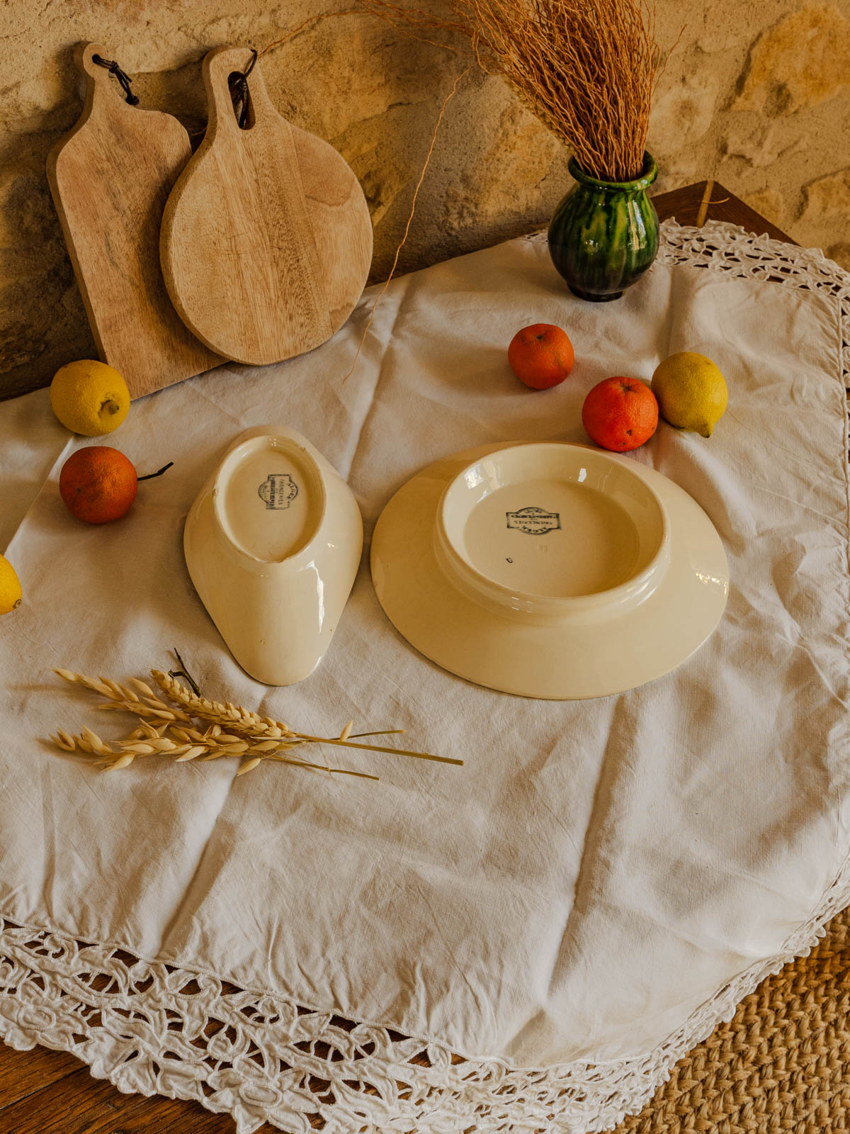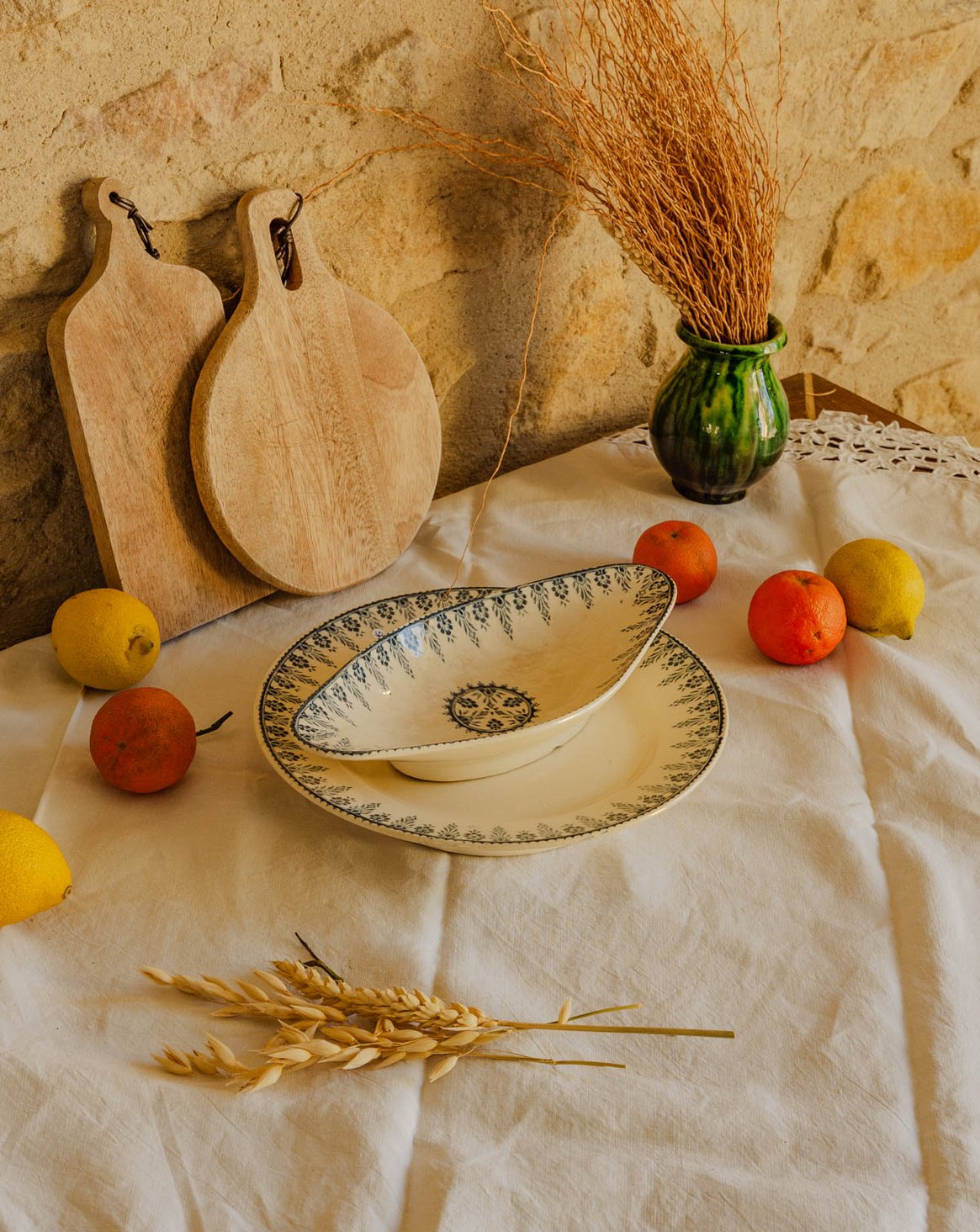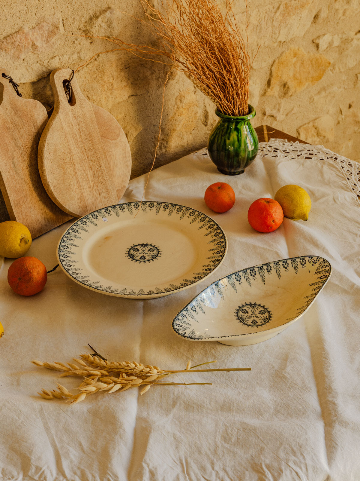 Découvrez cet ensemble en terre de fer bleu, modèle Alger de Digoin et Sarreguemines, qui apporte une touche rétro et authentique à la table. Le plat pied douche et le ravier, aux proportions adaptées pour service et entrées, mettent en valeur plats et mets du quotidien. La couleur bleue crée une ambiance chaleureuse et élégante, parfaite pour un repas convivial ou une présentation soignée. Éclat sous la pièce, sans affecter son usage.