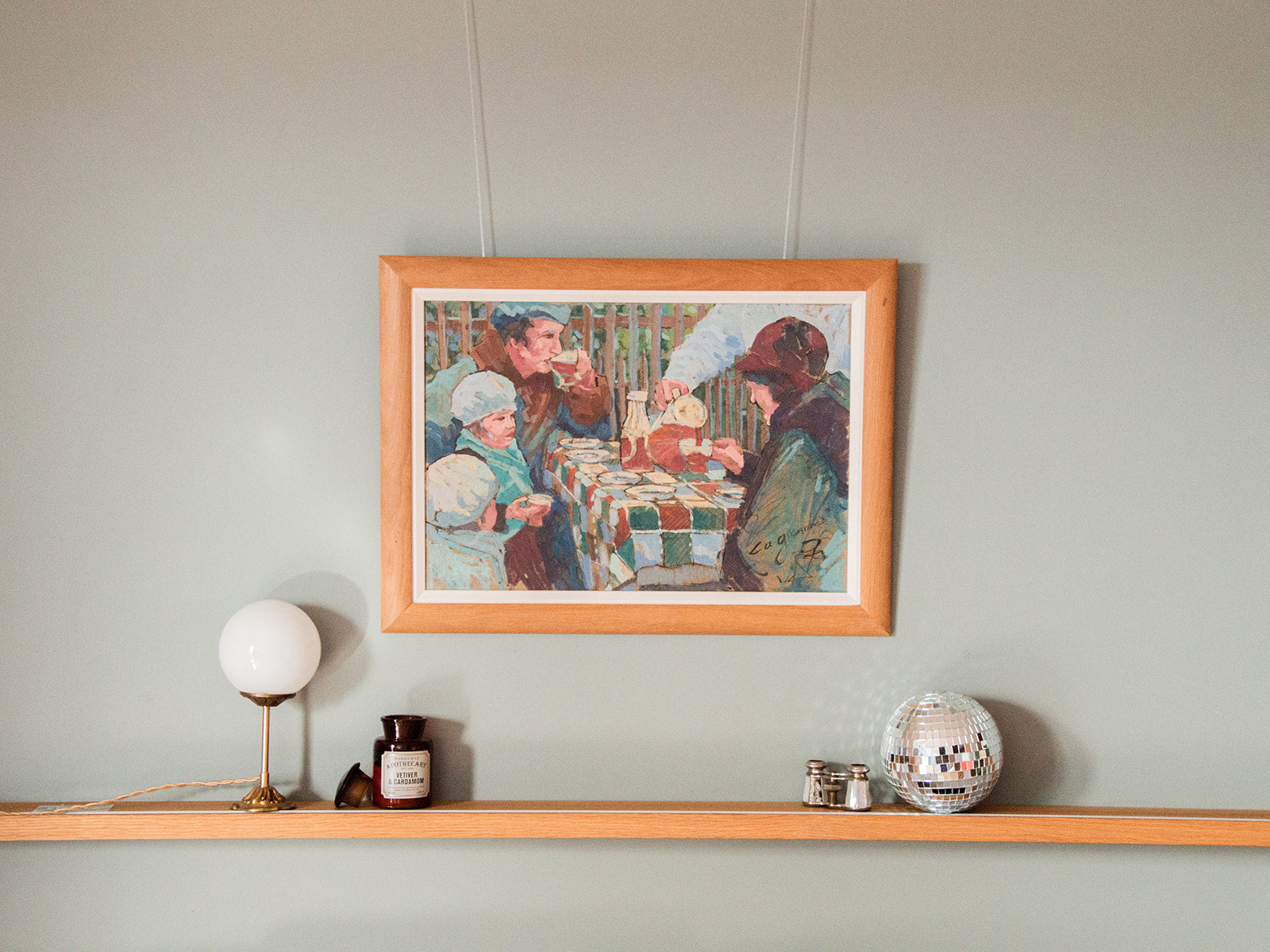 Découvrez cette magnifique huile sur toile des années 30, signée, qui capture un moment chaleureux où un serveur offre un verre de jus de grenadine à une famille réunie. Cette œuvre d'art exhale une atmosphère conviviale et nostalgique, idéale pour apporter une touche d'élégance à votre intérieur. Le tableau est encadré dans un chêne massif récent, en très bon état, ajoutant une note de qualité et de raffinement à cette pièce unique. Une véritable invitation à savourer la convivialité et les plaisirs simples de la vie.
