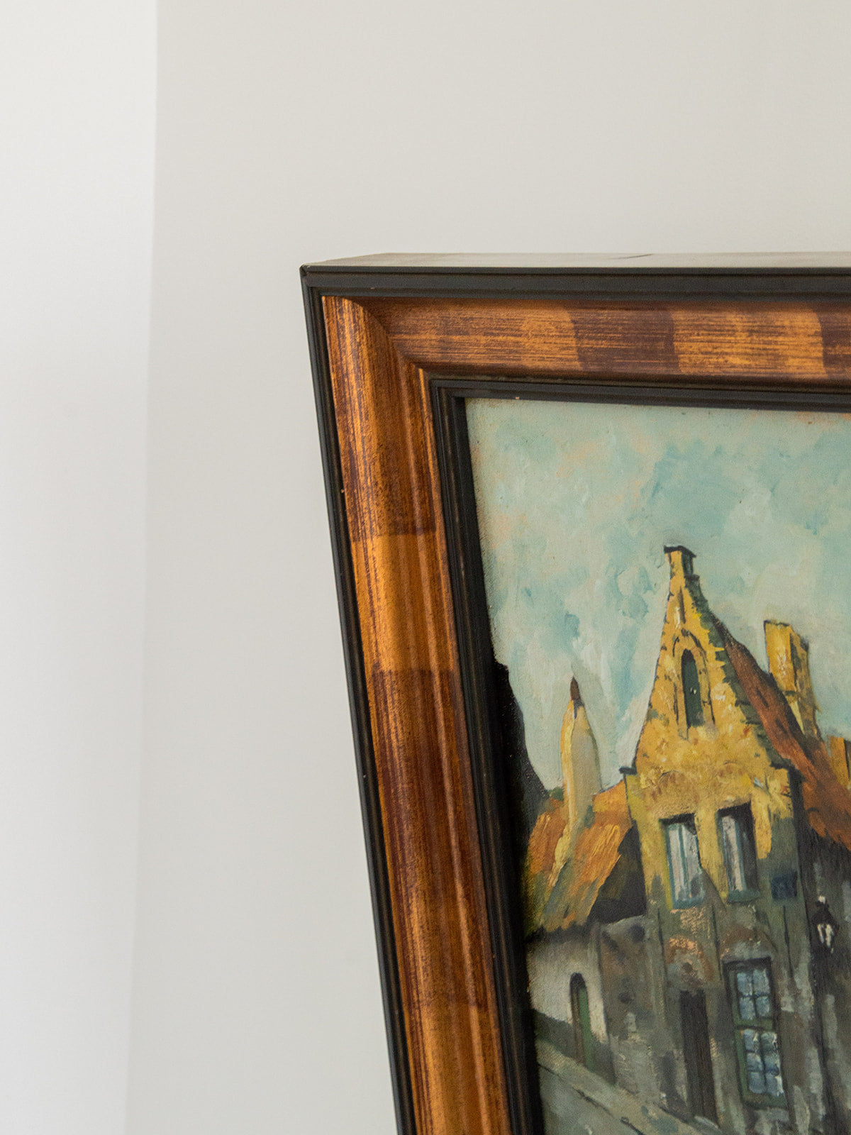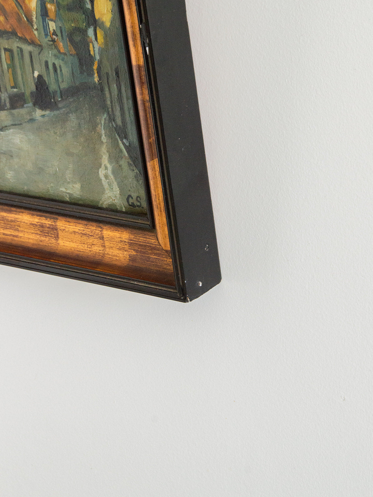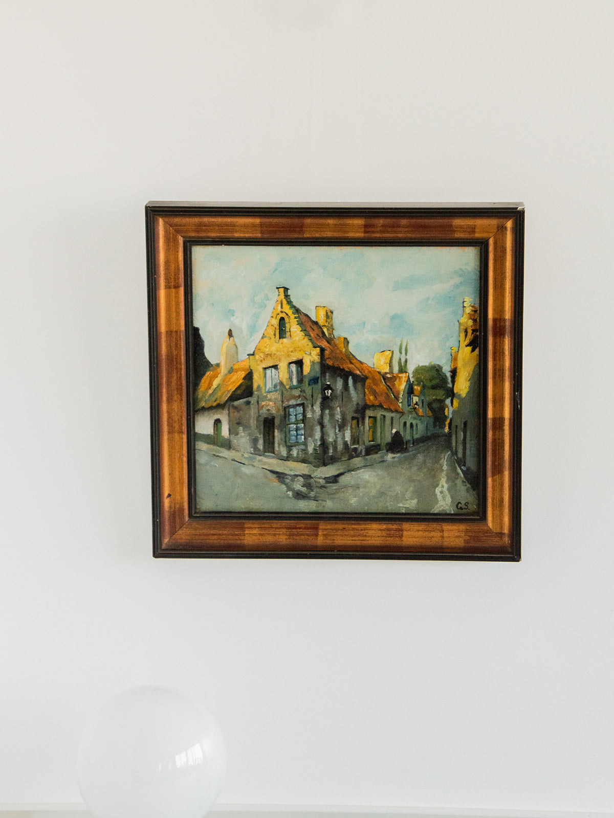 Découvrez cette toile peinte carrée représentant une charmante ruelle flamande, signée G.S. Ce tableau, riche en détails et en couleurs, capture l'authenticité et le charme de l'architecture local. Il est élégamment orné d'un cadre en bois, ajoutant une touche d'élégance à votre décoration intérieure. Apportez une atmosphère chaleureuse et artistique à votre espace avec cette œuvre unique, parfaite pour les amateurs d'art et de voyages.
