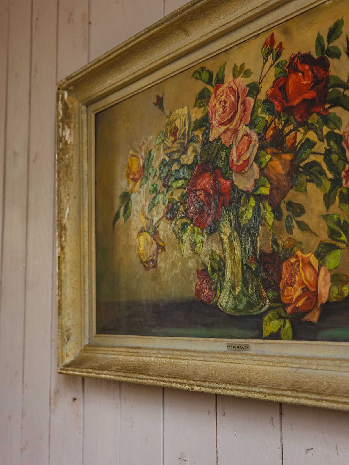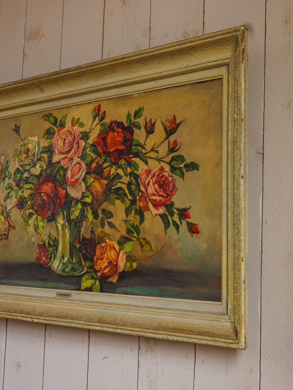Sublimez votre intérieur avec ce grand tableau encadré d'un bois chaleureux, où un motif de vase fleuri dialogue entre délicatesse picturale et présence notable. Sa surface généreuse crée un point focal qui habille un salon, une entrée ou une chambre, tandis que la patine du cadre et ses traces du temps apportent une touche d'authenticité et de naturel. Idéal pour introduire une ambiance poétique et lumineuse, il s'accorde aussi bien avec des décors contemporains que plus classiques.