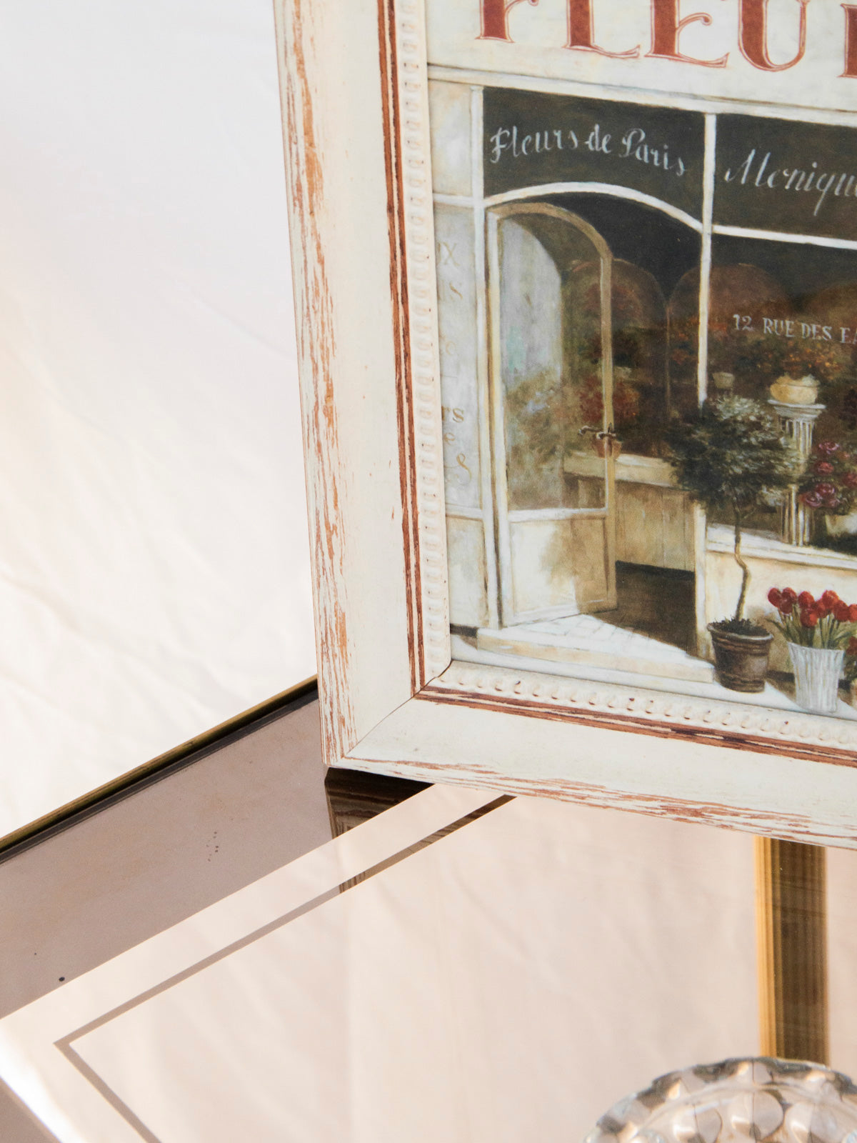 Invitez une atmosphère de boutique florale parisienne avec cette illustration à effet peinture, imprimée sur papier et protégée par une vitre en verre dans un cadre beige en bois. Son rendu pictural et ses teintes délicates apportent une touche poétique et élégante aux murs, idéale pour habiller un coin salon, une entrée ou une chambre. Le cadre, aux proportions contenues, facilite une mise en scène discrète et raffinée grâce à une accroche murale intégrée.