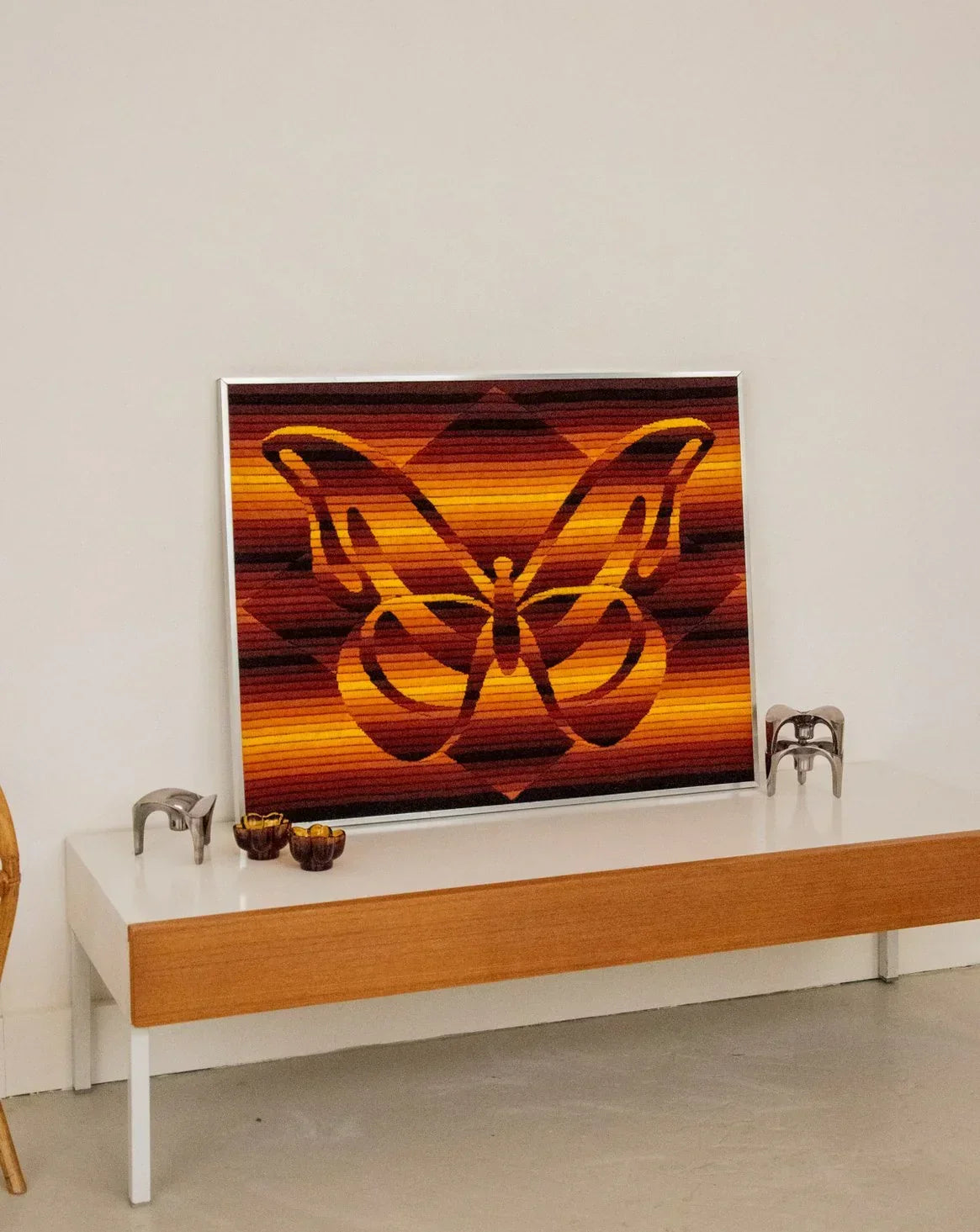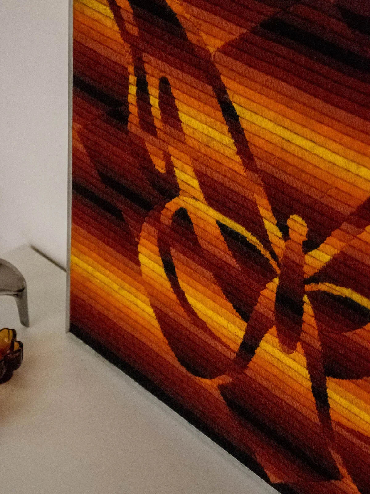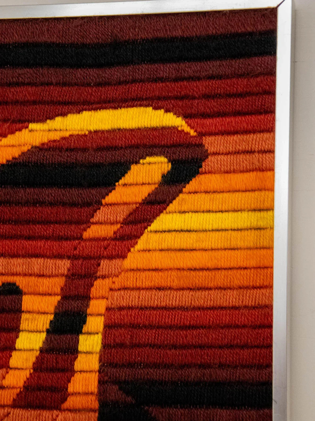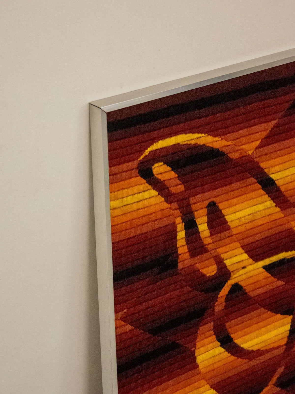 Découvrez cette tapisserie cinétique attribuée Patrice Allart, édition Seg Paris, une œuvre vintage des années 70 tissée en fils de laine au point large sur canevas et montée dans un cadre aluminium. Son relief texturé et ses motifs géométriques animent subtilement la surface, créant un jeu de mouvement et de couleur qui capte le regard. De format contenu, elle s'intègre aussi bien au-dessus d'un meuble qu'à côté d'une bibliothèque, apportant chaleur et caractère à une pièce. Idéale pour une ambiance rétro-chic, elle dialogue avec des intérieurs contemporains.