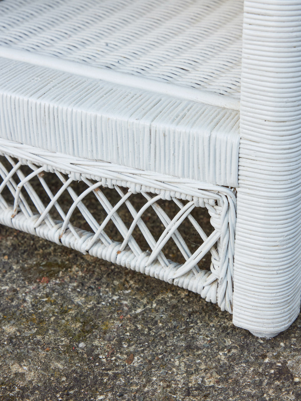 Adoptez ce chevet en rotin blanc au charme vintage, au tressage délicat et à la silhouette légère. Son tiroir muni d'un bouton rond et son espace de rangement ouvert en dessous offrent un rangement pratique pour livres et objets du quotidien, tandis que ses proportions compactes s'intègrent aussi bien dans une petite chambre que dans une pièce plus spacieuse. Sa matière naturelle diffuse une atmosphère douce et chaleureuse, parfaitement adaptée à une décoration bohème ou contemporaine.