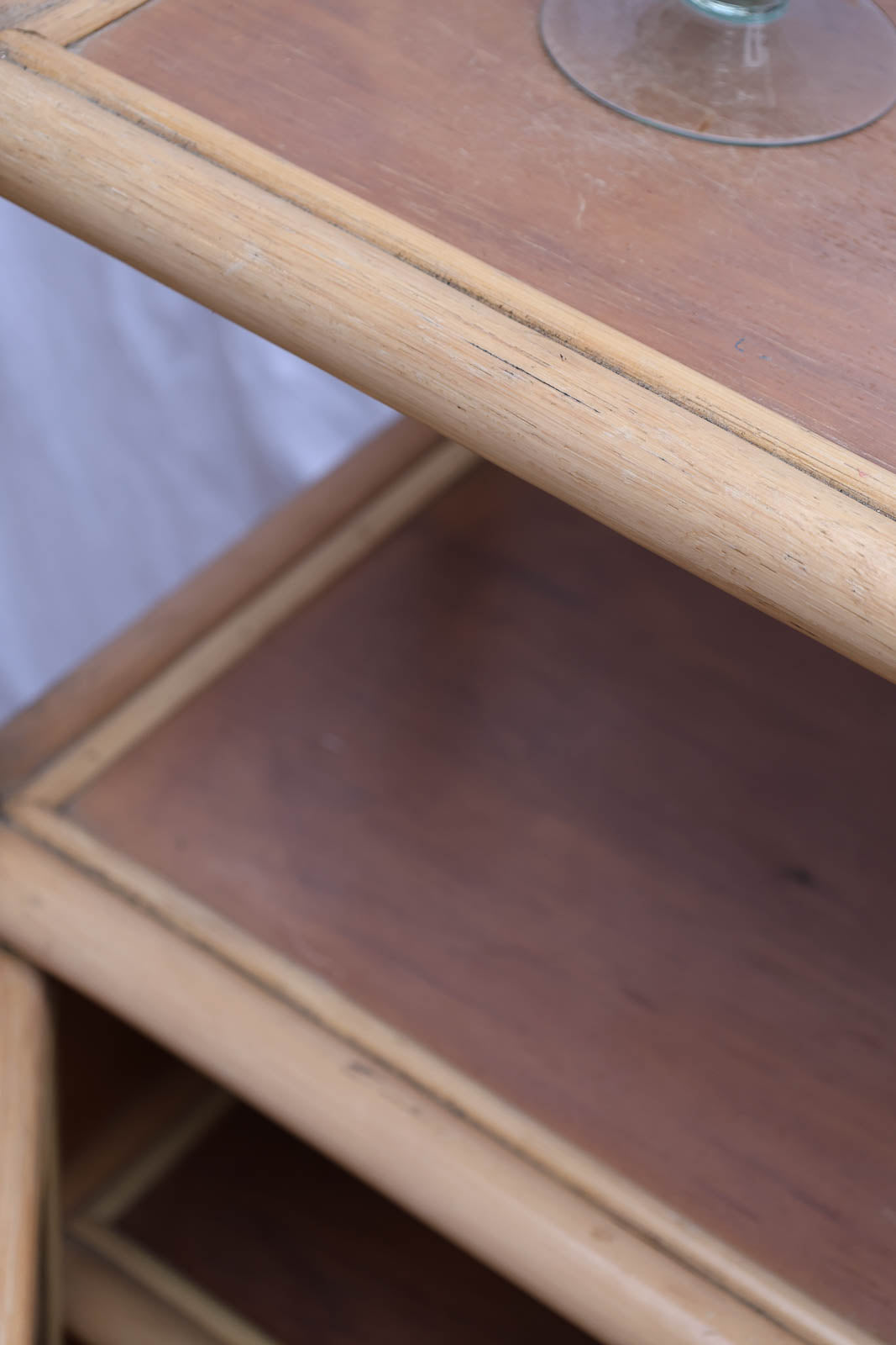 Ajoutez ce charmant meuble de rangement / commode en bambou à votre intérieur, dont la silhouette élancée s'intègre naturellement dans un couloir ou une salle de bains. Doté de deux portes et d'une étagère intérieure, il permet d'organiser linge, vaisselle ou accessoires tout en offrant un plateau utile pour objets décoratifs ou plantes. Sa texture chaleureuse et son style léger apportent une ambiance naturelle et apaisée à votre espace.