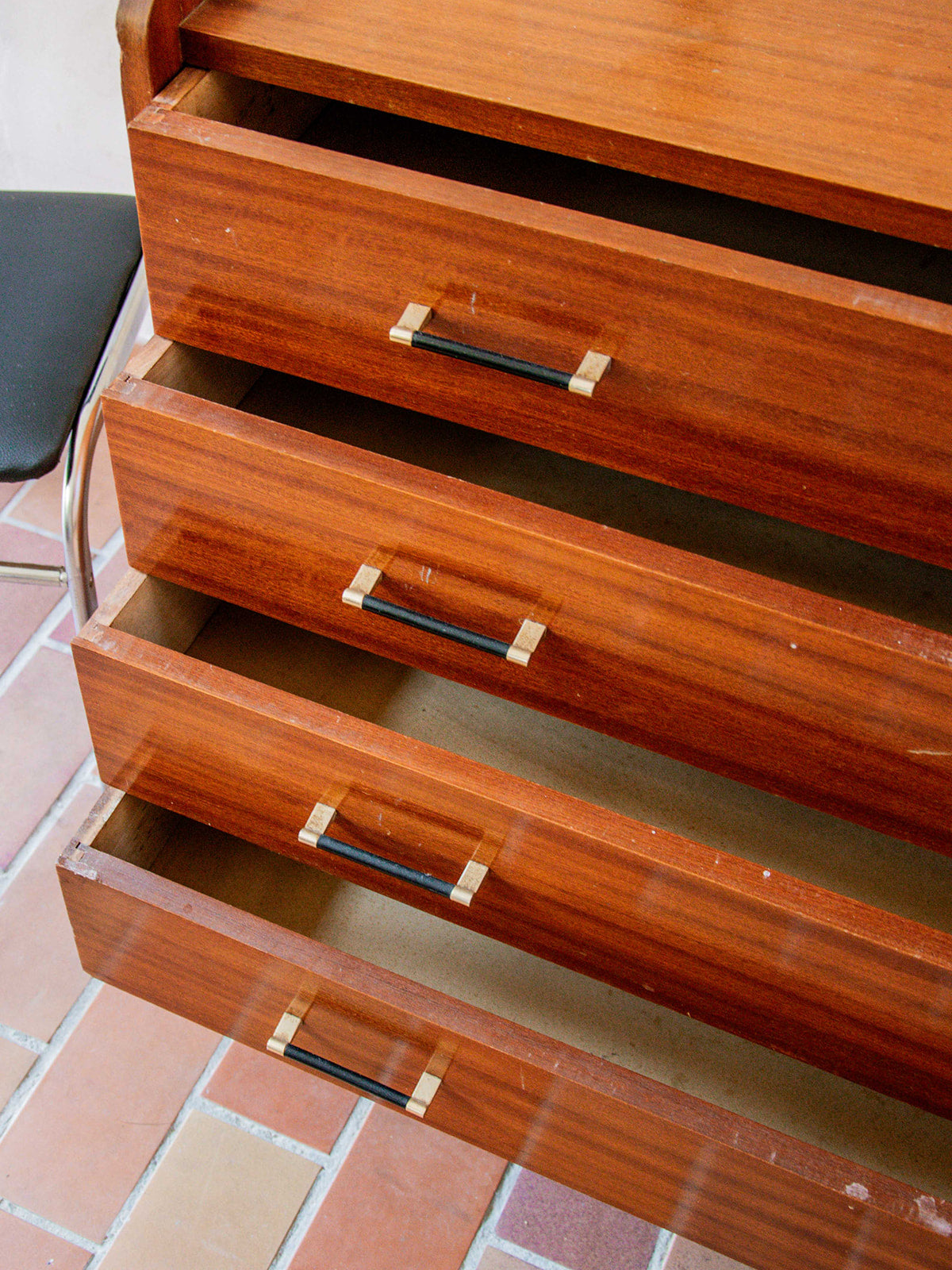 Découvrez cette commode au style scandinave, dotée de 4 tiroirs spacieux pour un rangement pratique et élégant. Son bois de teinte moyenne s’accorde facilement à de nombreux intérieurs. Les poignées en métal noir apportent une touche moderne et contrastée. Ses pieds compas et ses côtés légèrement plus larges lui donnent une belle présence visuelle. Un meuble à la fois fonctionnel et plein de caractère.