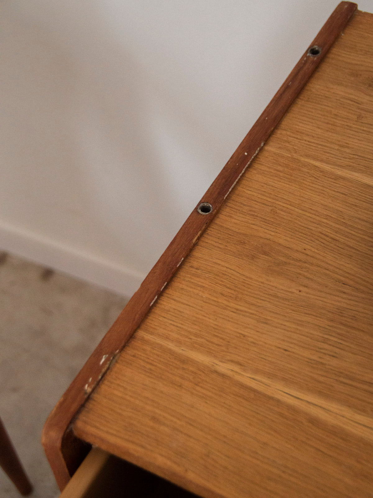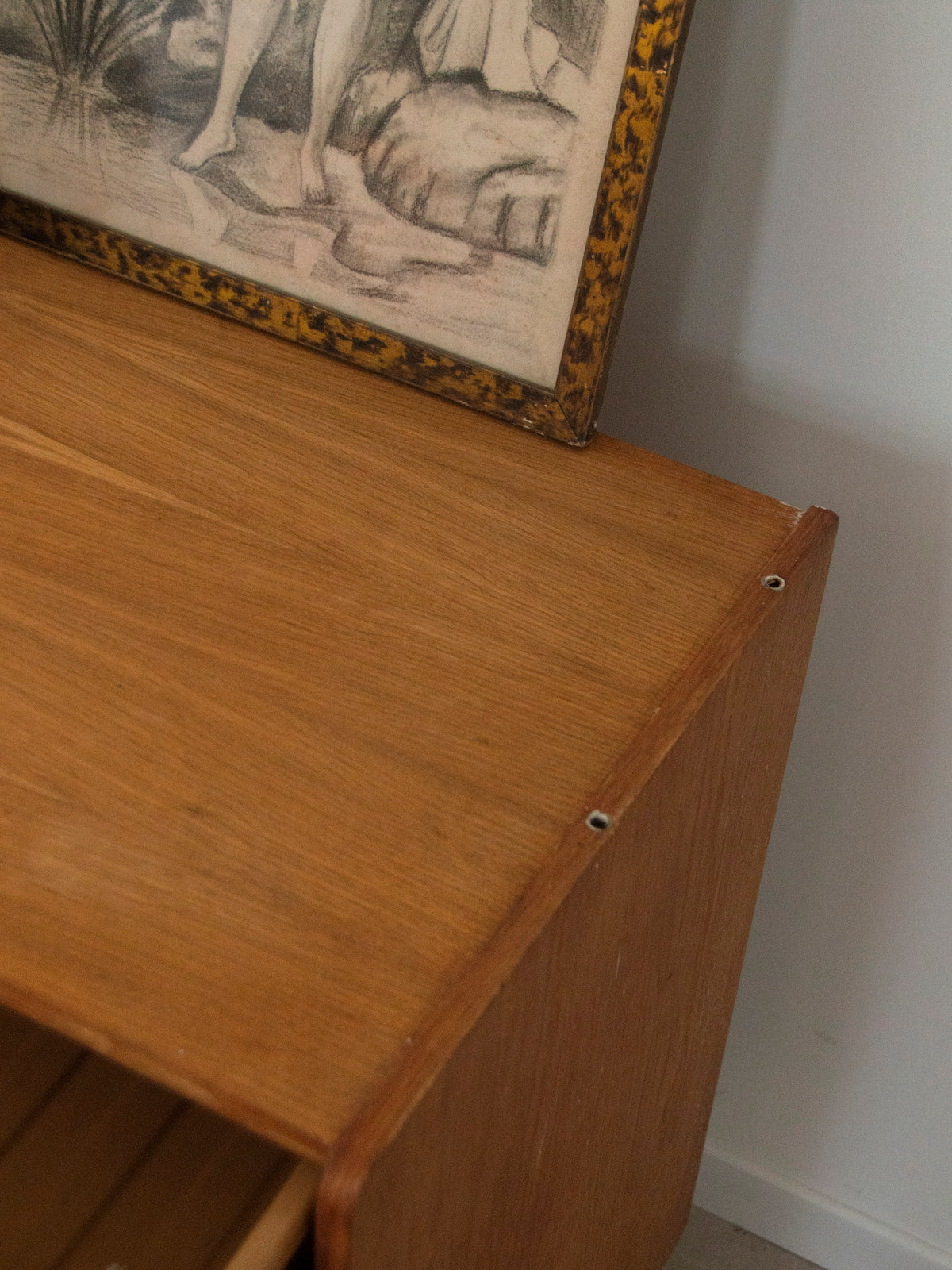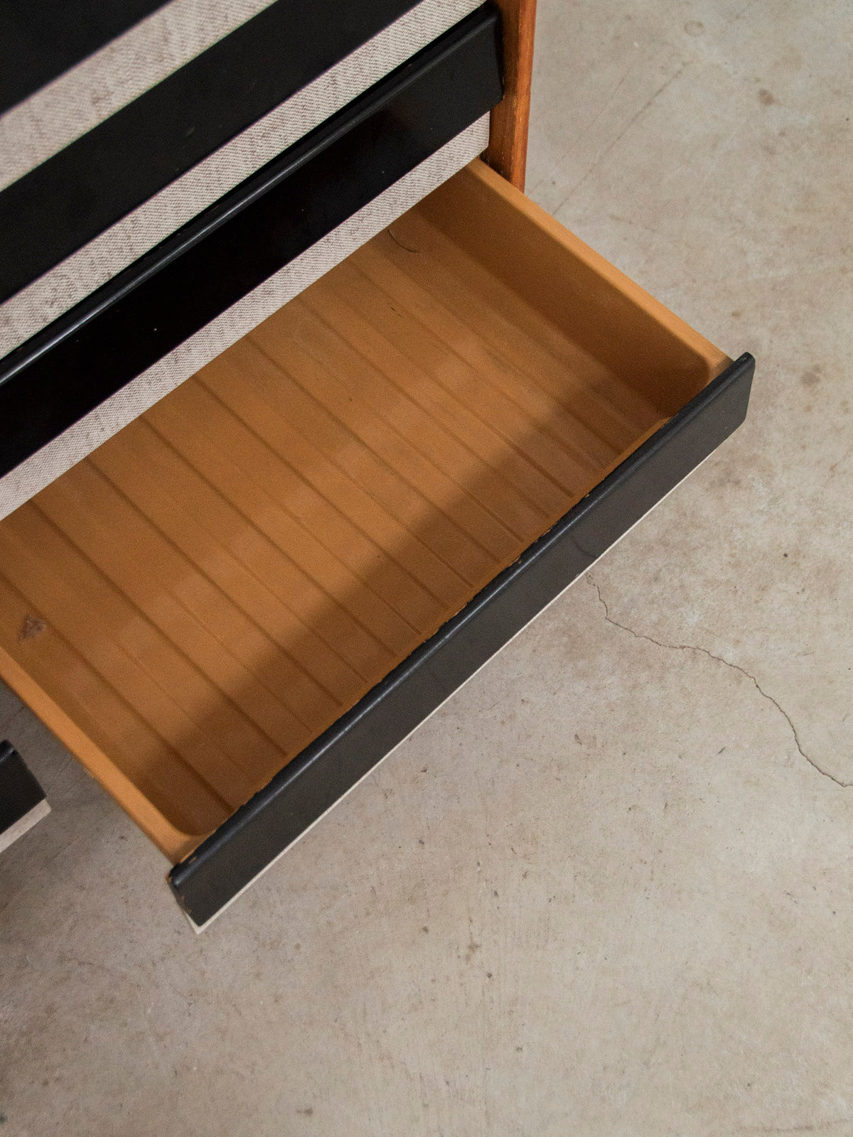 Adoptez cette petite commode en bois clair aux proportions étudiées et au charme discret. Ses huit tiroirs à façades noir et gris, doublés d'intérieurs plastiques pratiques, offrent un rangement organisé pour lingerie, accessoires ou bureau sans encombrer l'espace. Les pieds compas métalliques lui apportent une touche rétro et une silhouette élancée, idéale pour une chambre ou une entrée lumineuse. Son esprit scandinave crée une atmosphère apaisée et fonctionnelle.