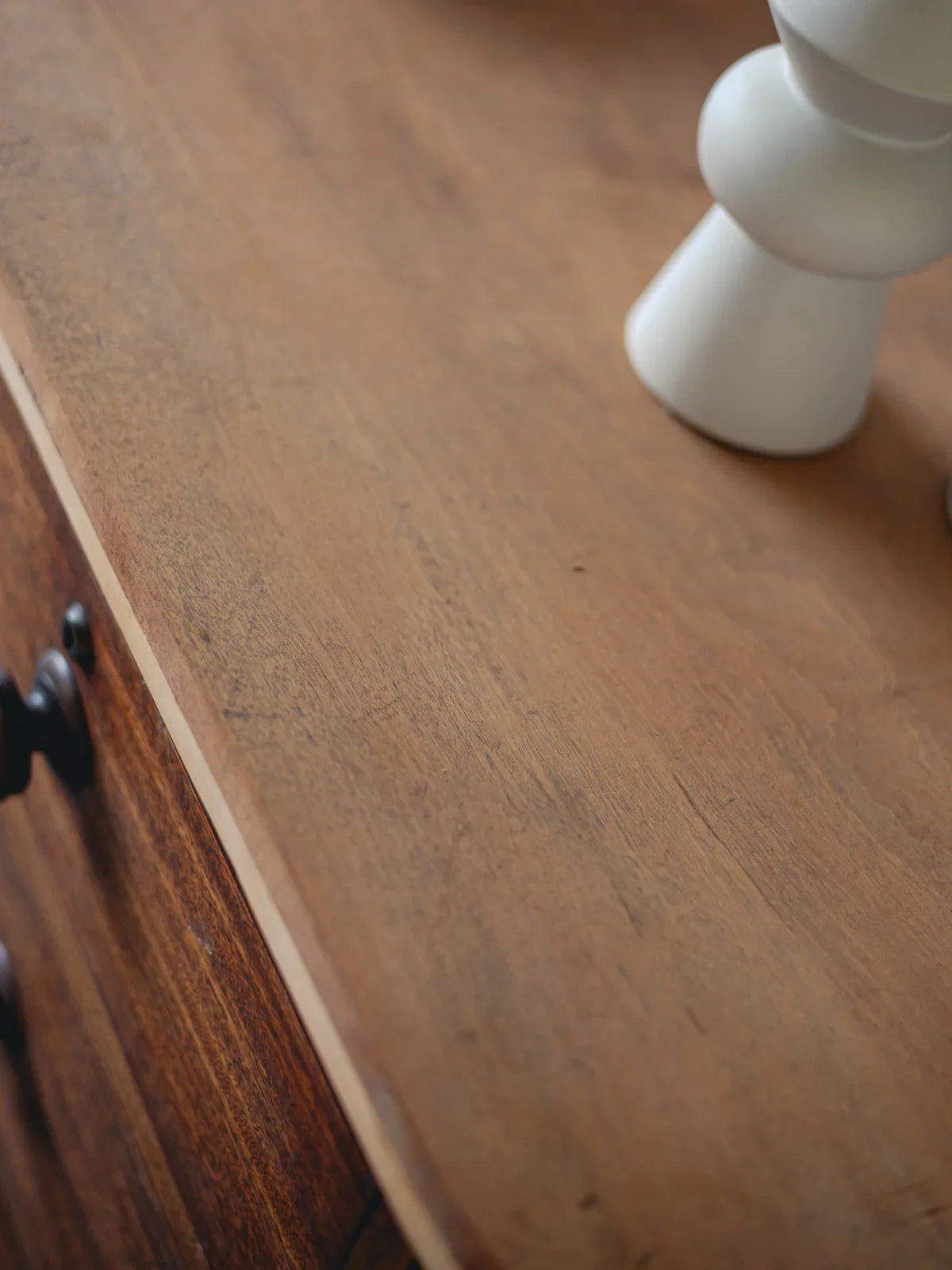 Apportez un air de caractère avec cette commode en bois foncé, pouvant aussi jouer le rôle d'un buffet élégant. Son plateau remplacé récemment par une planche en bois massif clair crée un contraste chaleureux et contemporain, tandis que trois grands tiroirs à doubles poignées et deux petits tiroirs offrent un rangement bien pensé pour la vaisselle, le linge de table ou les accessoires. Proposée dans des proportions généreuses, elle s'intègre naturellement à la salle à manger, à l'entrée ou au salon pour une ambiance sobre et authentique. Traces du temps observées et quelques légères rayures.