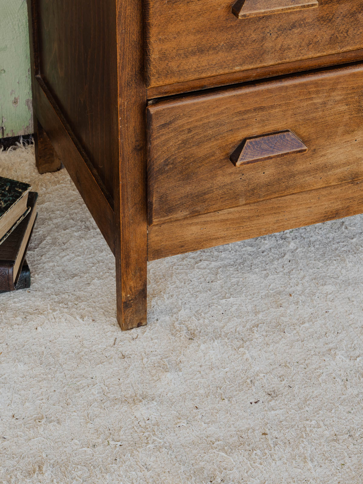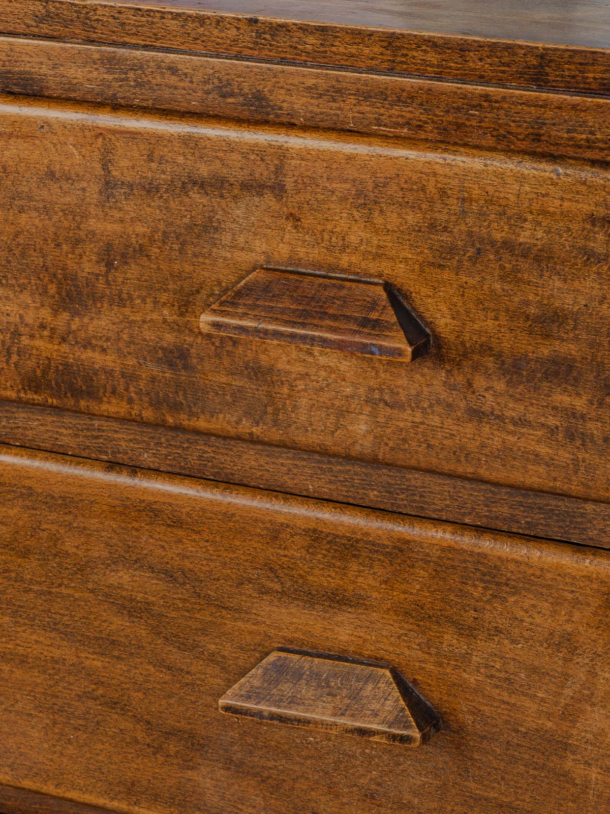 Découvrez cette commode en hêtre, aux lignes sobres et proportions généreuses qui s'intègrent aussi bien dans une chambre que dans une entrée élégante. Ses trois tiroirs à poignées en bois offrent un rangement structuré, tandis que la patine chaude du bois crée une atmosphère feutrée et intemporelle. Elle accueillera linge, accessoires ou objets déco pour composer un coin à la fois pratique et raffiné. Quelques marques d'usage qui font son authenticité.