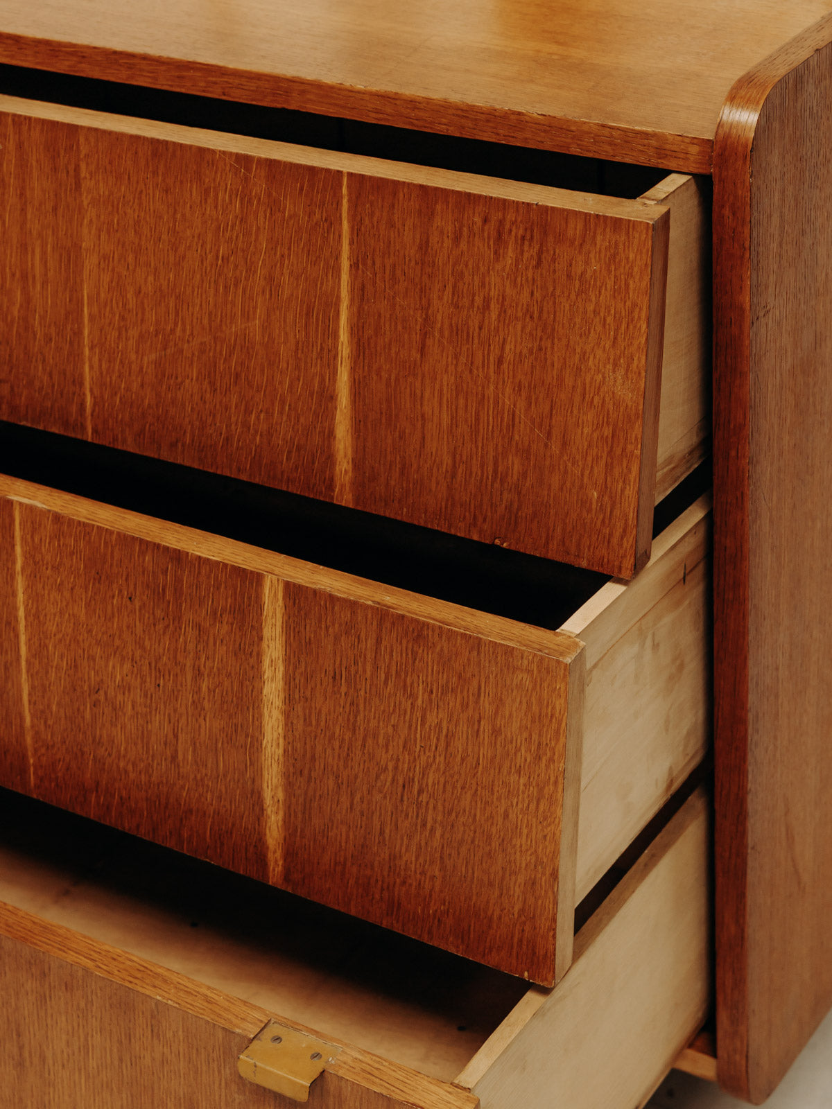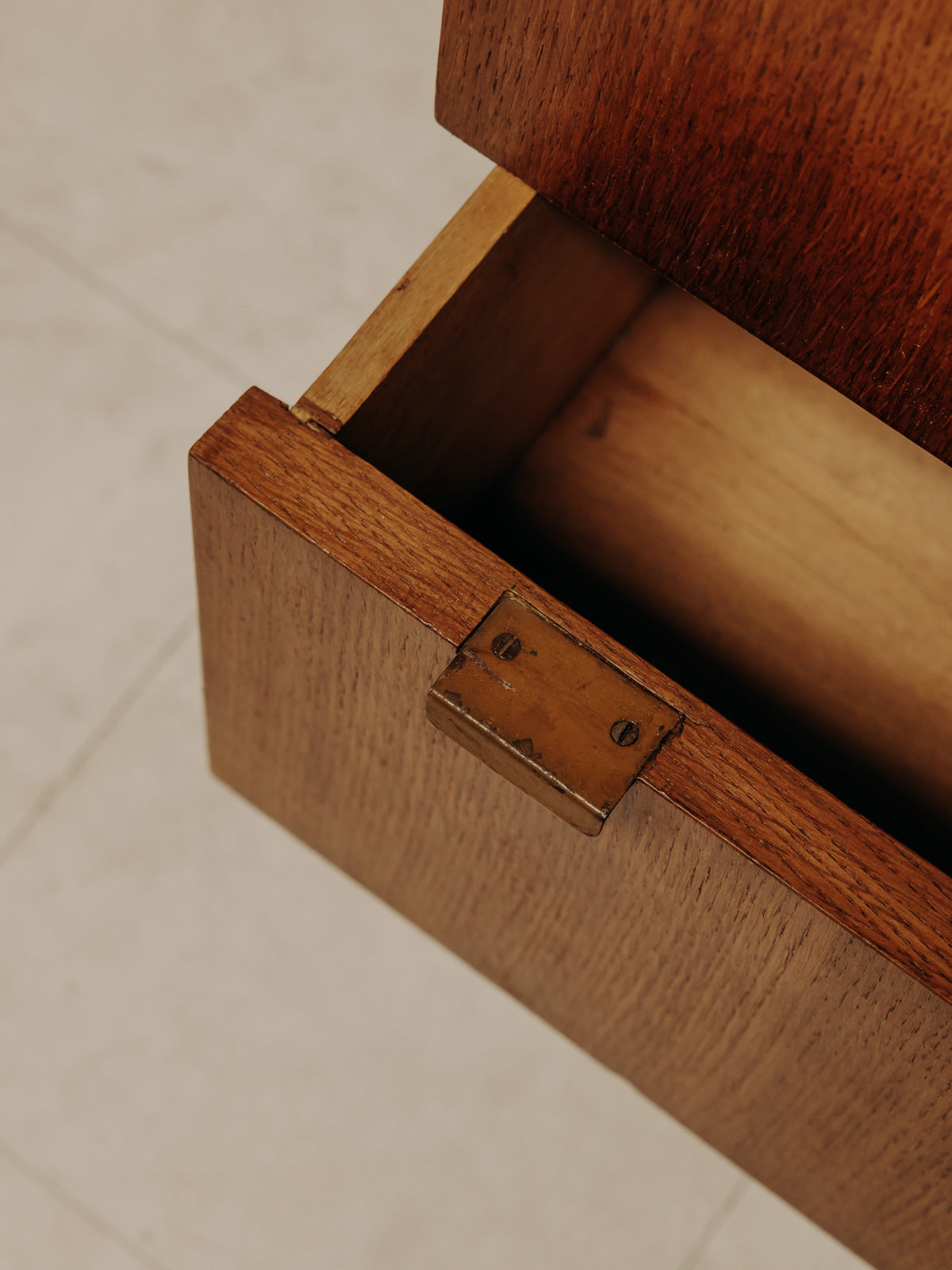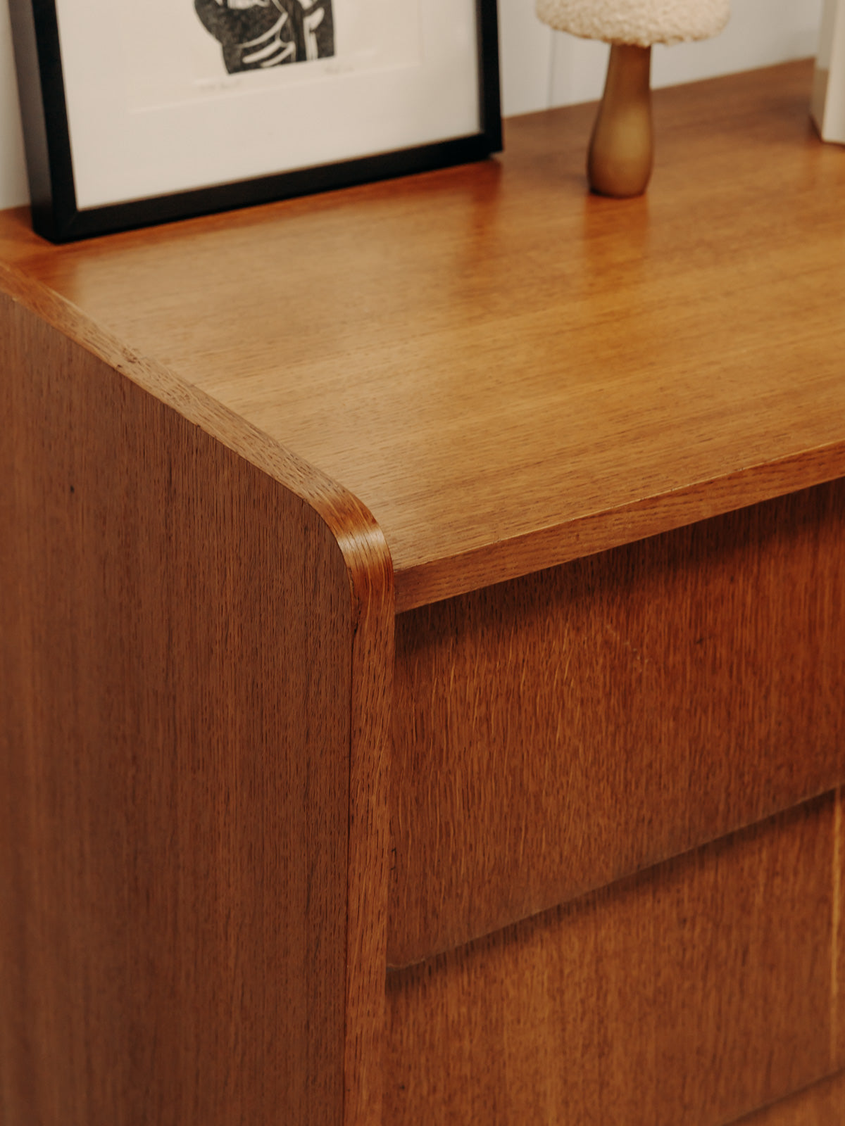 Adoptez cette commode scandinave en teck, aux lignes épurées et à la teinte chaleureuse qui apporte une élégance naturelle à la pièce. Ses trois tiroirs offrent un rangement organisé et profond, idéal pour le linge ou les accessoires, tandis que ses proportions équilibrées s'intègrent autant dans une chambre que dans une entrée ou un salon. Le bois de teck, patiné, diffuse une ambiance douce et accueillante. Son design sobre invite à une décoration contemporaine et apaisée.