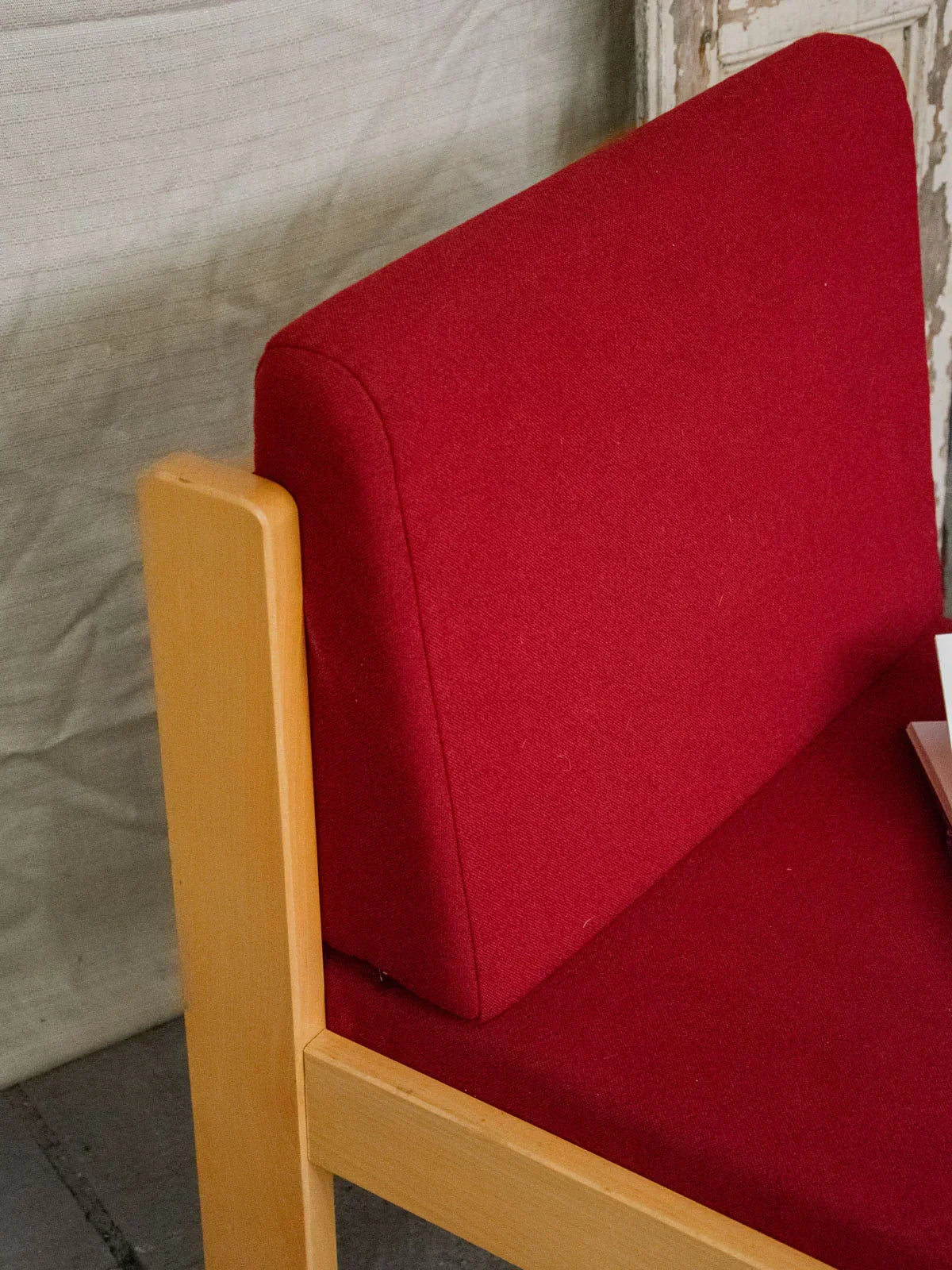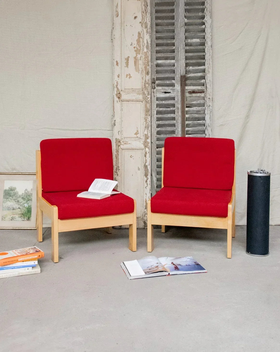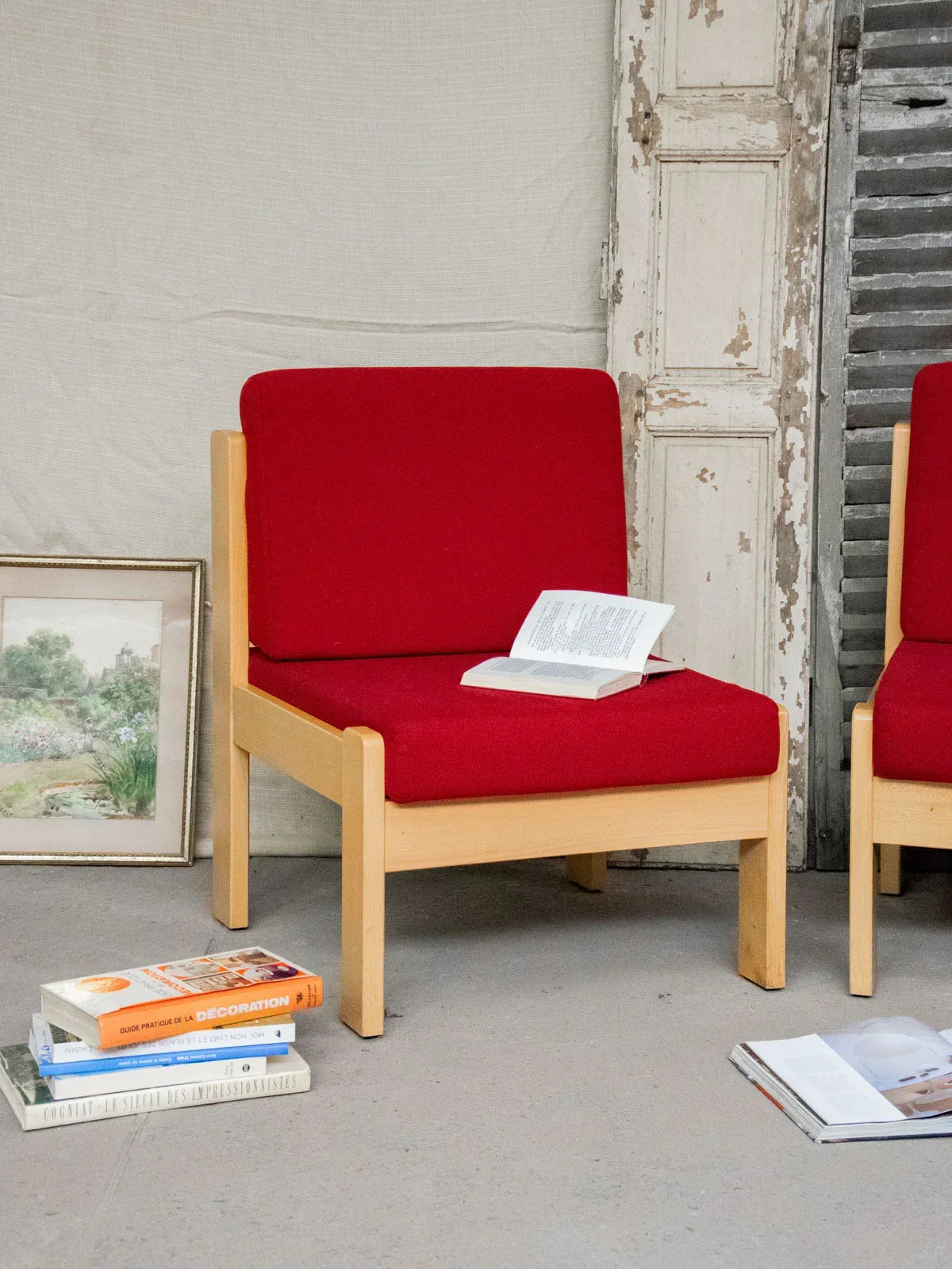 Apportez une touche chaleureuse à votre intérieur avec ce lot de deux chauffeuses en bois clair, habillées de coussins rouges entièrement déhoussables. Le contraste du bois naturel et du textile compose une silhouette épurée, parfaite pour un salon intime, un coin lecture ou une chambre, L'assise confortable invite à la détente, les housses se retirent facilement pour l'entretien et le duo crée une ambiance accueillante et contemporaine. Légères traces du temps sur le bois et un petit point blanc discret sur un coussin d'assise.