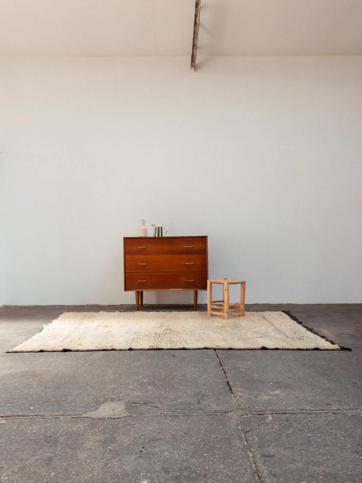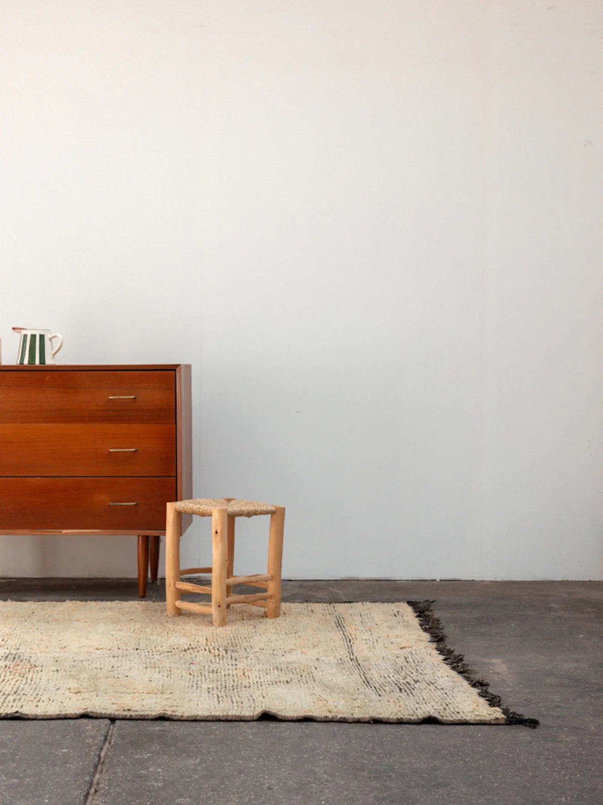 Ces tapis sont tissés à la main par des artisanes de l’Atlas, selon des savoir-faire transmis de génération en génération. Certains ont vécu une première vie pendant plusieurs années d’être soigneusement chinés, lavés et restaurés. Leurs petites cicatrices et leur patine unique sont les témoins de leur histoire. Accueillir l’un de ces tapis chez soi, c’est apporter une touche d’authenticité et de voyage à son intérieur.
