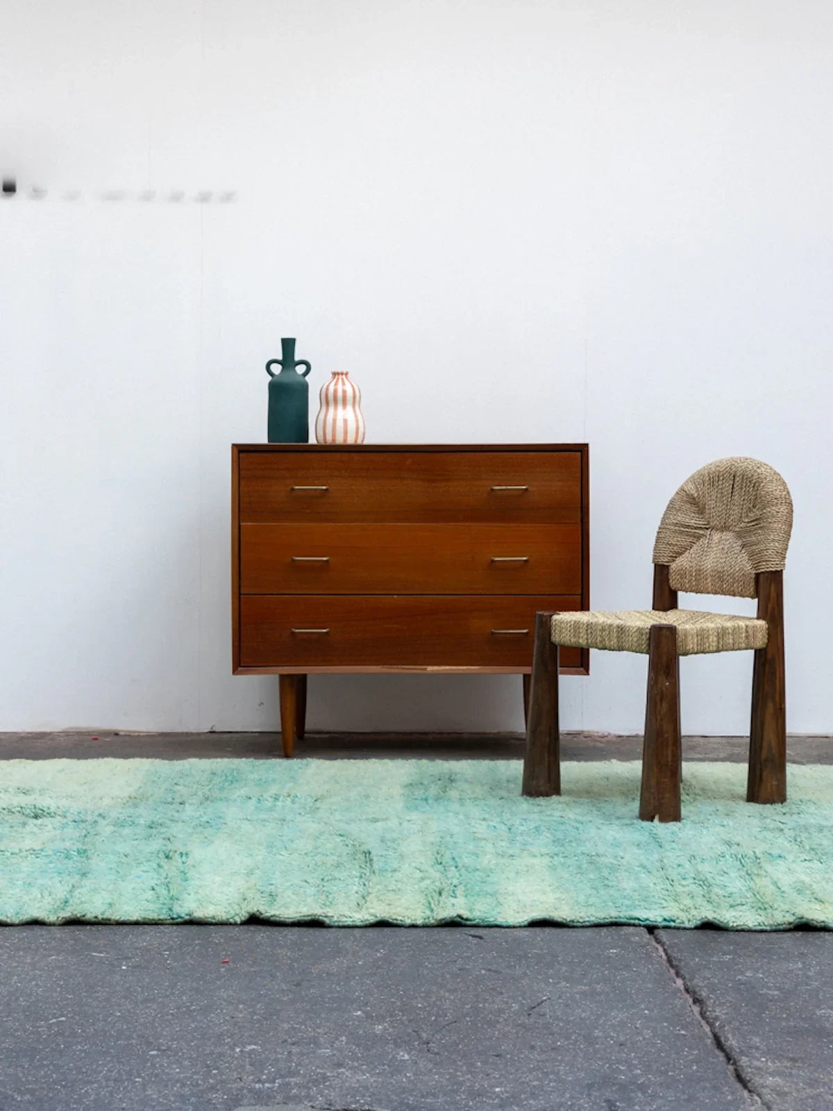 Ces tapis sont tissés à la main par des artisanes de l’Atlas, selon des savoir-faire transmis de génération en génération. Certains ont vécu une première vie pendant plusieurs années d’être soigneusement chinés, lavés et restaurés. Leurs petites cicatrices et leur patine unique sont les témoins de leur histoire. Accueillir l’un de ces tapis chez soi, c’est apporter une touche d’authenticité et de voyage à son intérieur.