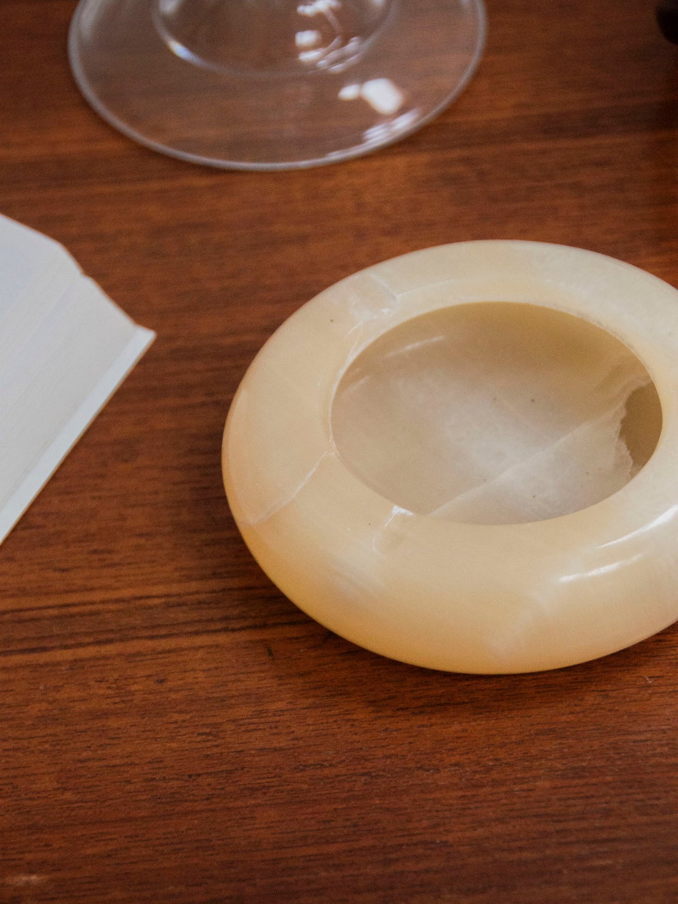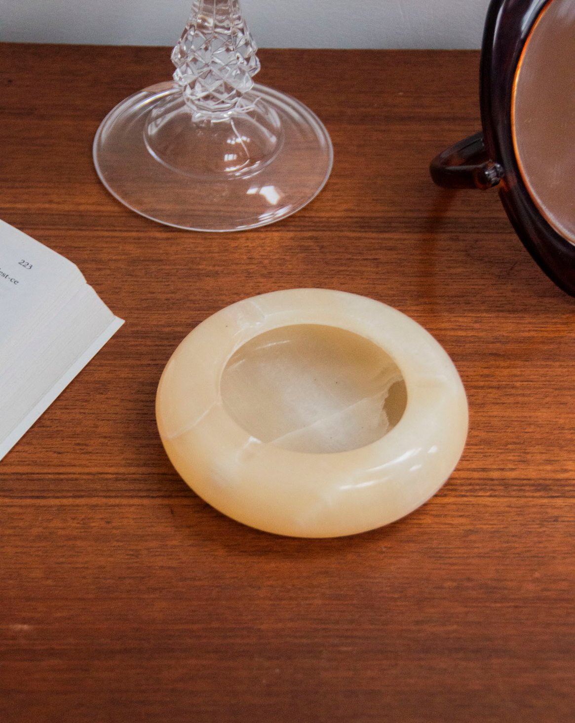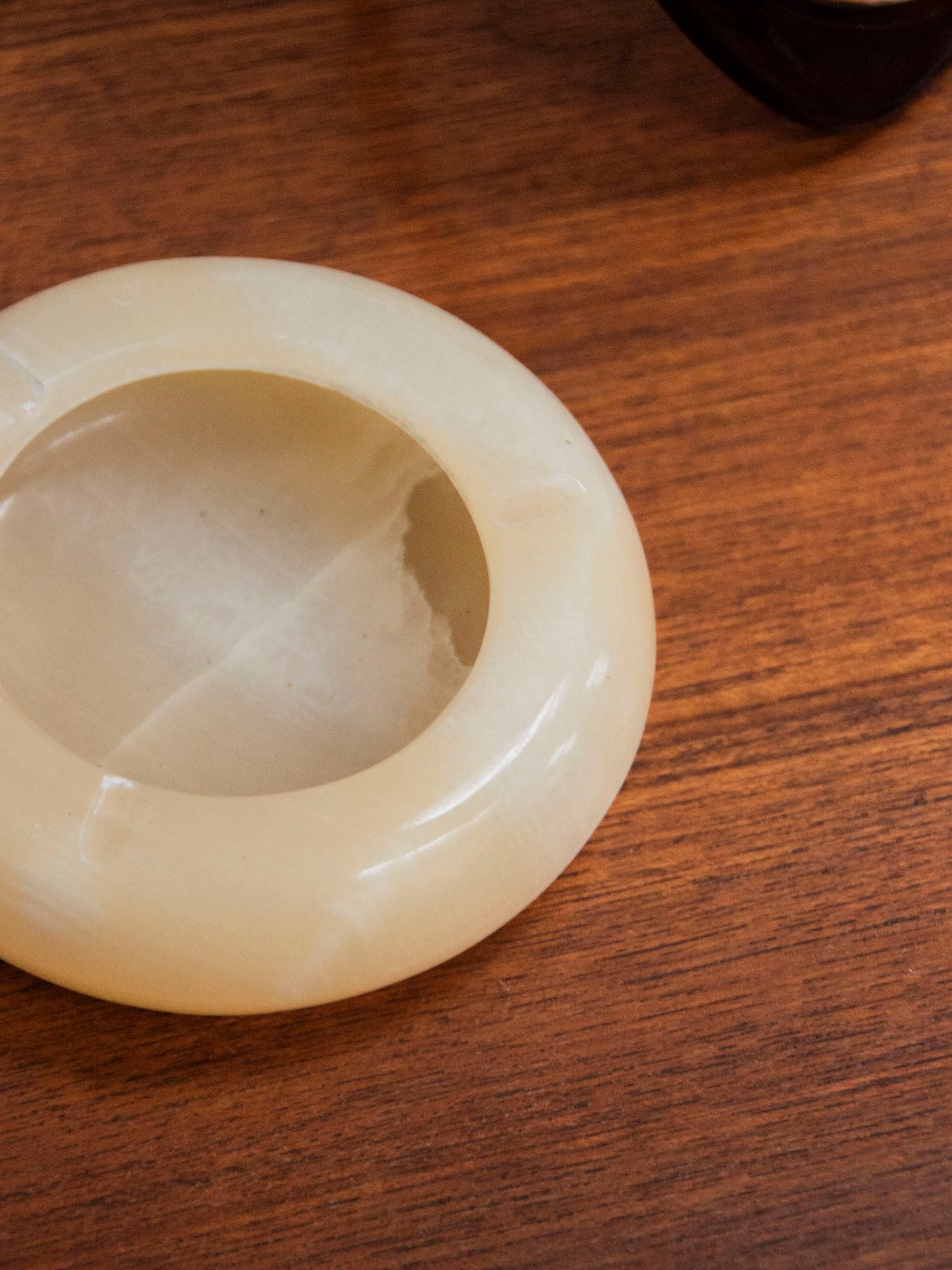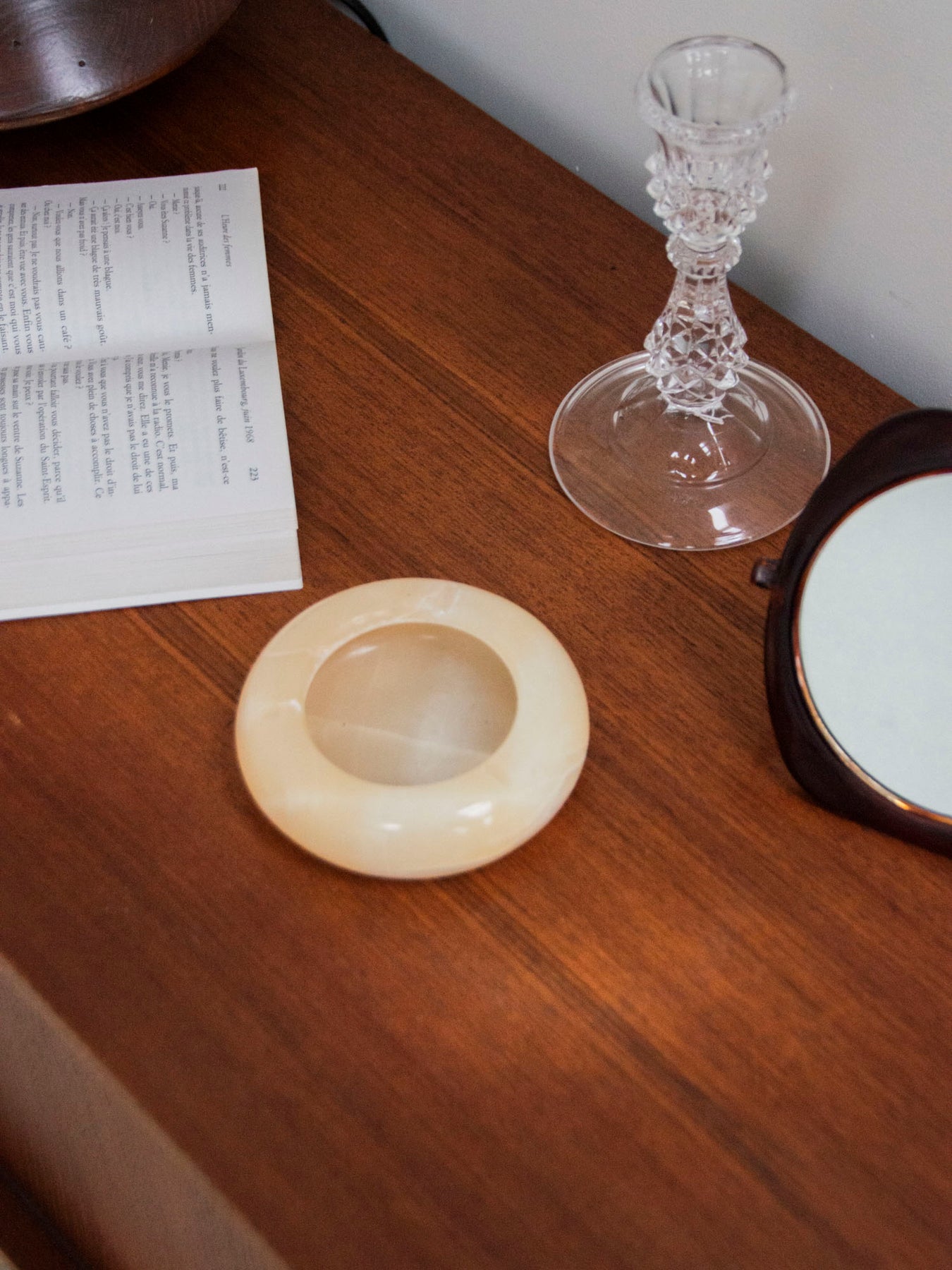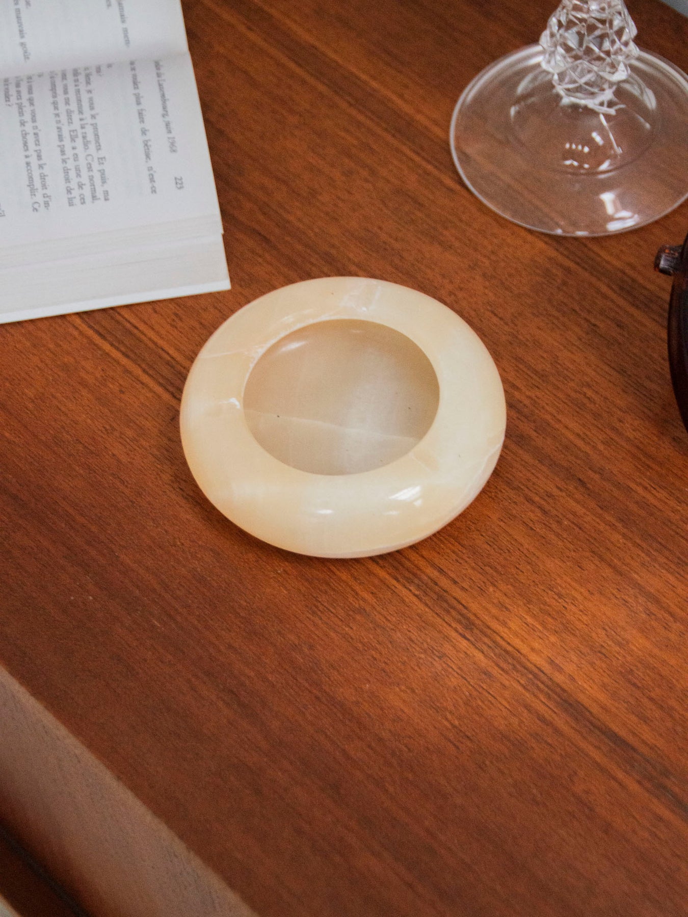 Ajoutez une touche sophistiquée à votre intérieur avec ce cendrier en onyx au rendu crème et effet marbre, dont la finition douce évoque une pierre polie. Sa structure assez lourde assure une grande stabilité et un maintien sûr, tandis que ses encoches discrètes accueillent cigarettes avec élégance. Idéal posé sur une table basse, un bureau ou un guéridon, il crée une atmosphère apaisée et raffinée. Un bel objet pratique qui complète subtilement votre décor.