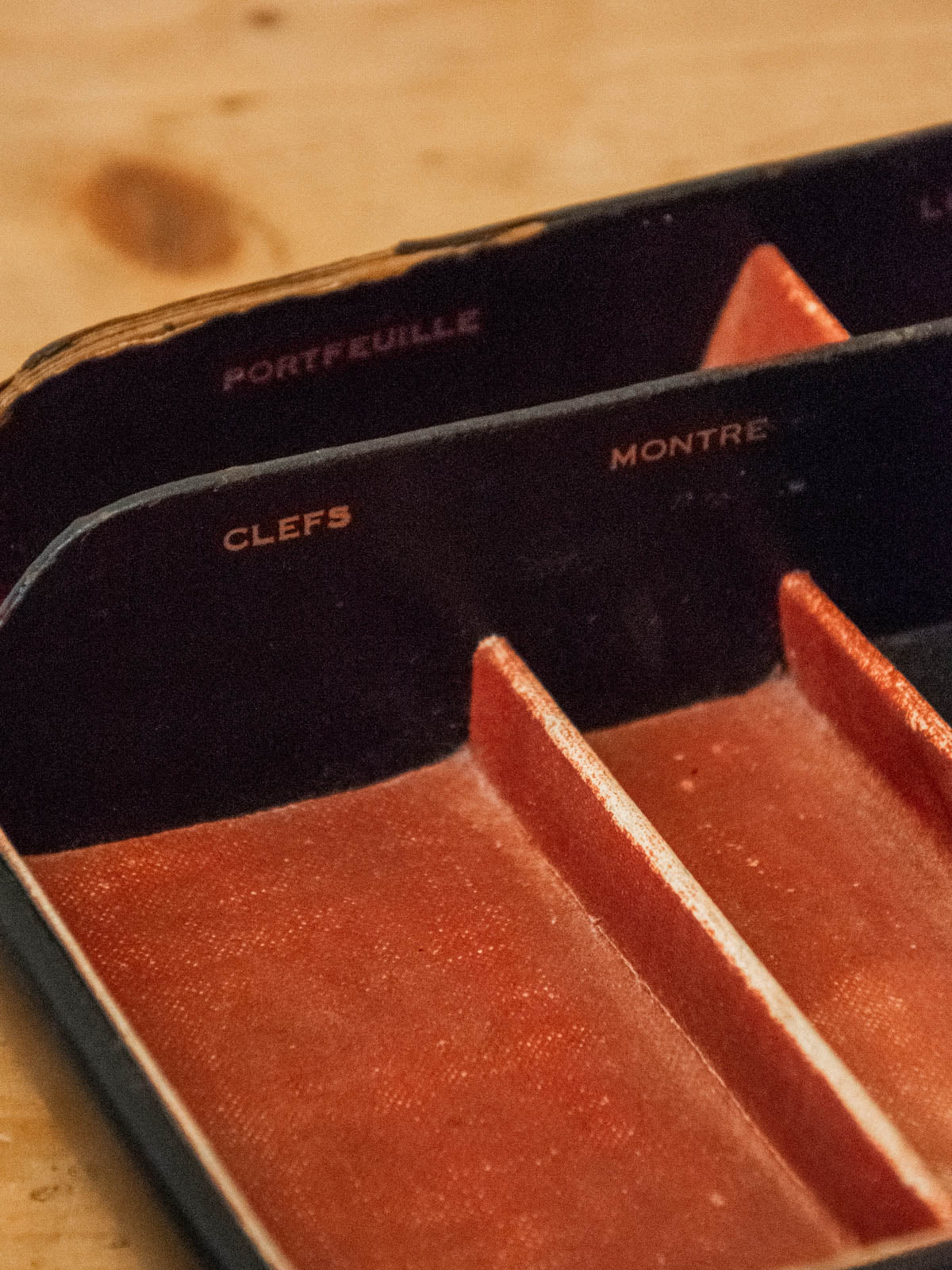 Offrez à votre entrée ou bureau ce vide‑poche vintage pour gentleman, probablement signé Morley of England, pensé pour accueillir monnaies, clés et petits objets du quotidien. Son format compact et ses proportions basses permettent un usage discret sur une console ou un plateau, tandis que sa matière patinée et son esthétisme sobre évoquent l'élégance britannique et invitent une atmosphère raffinée, facilement intégrable à un intérieur contemporain. Légères traces d'usage visibles.