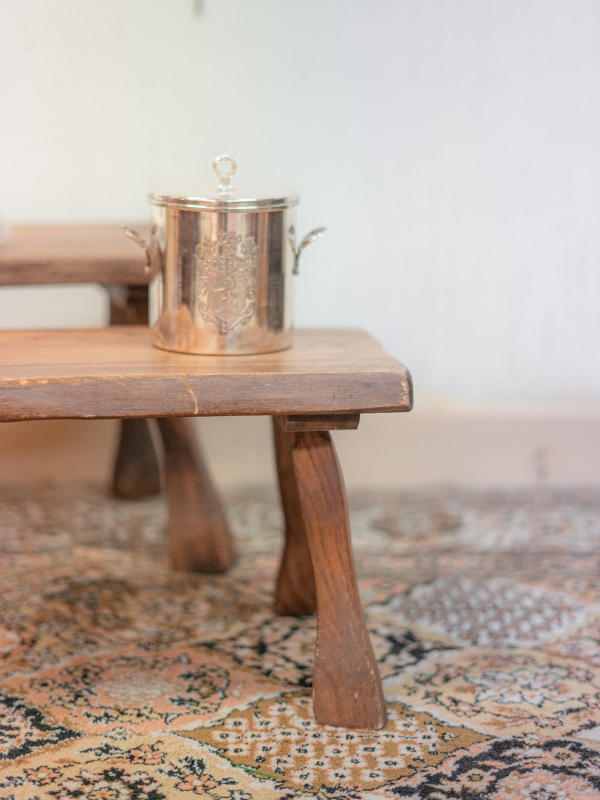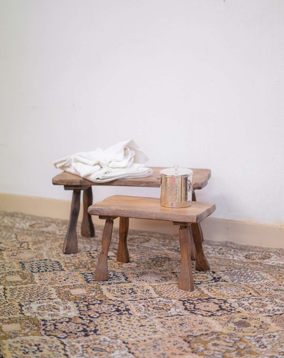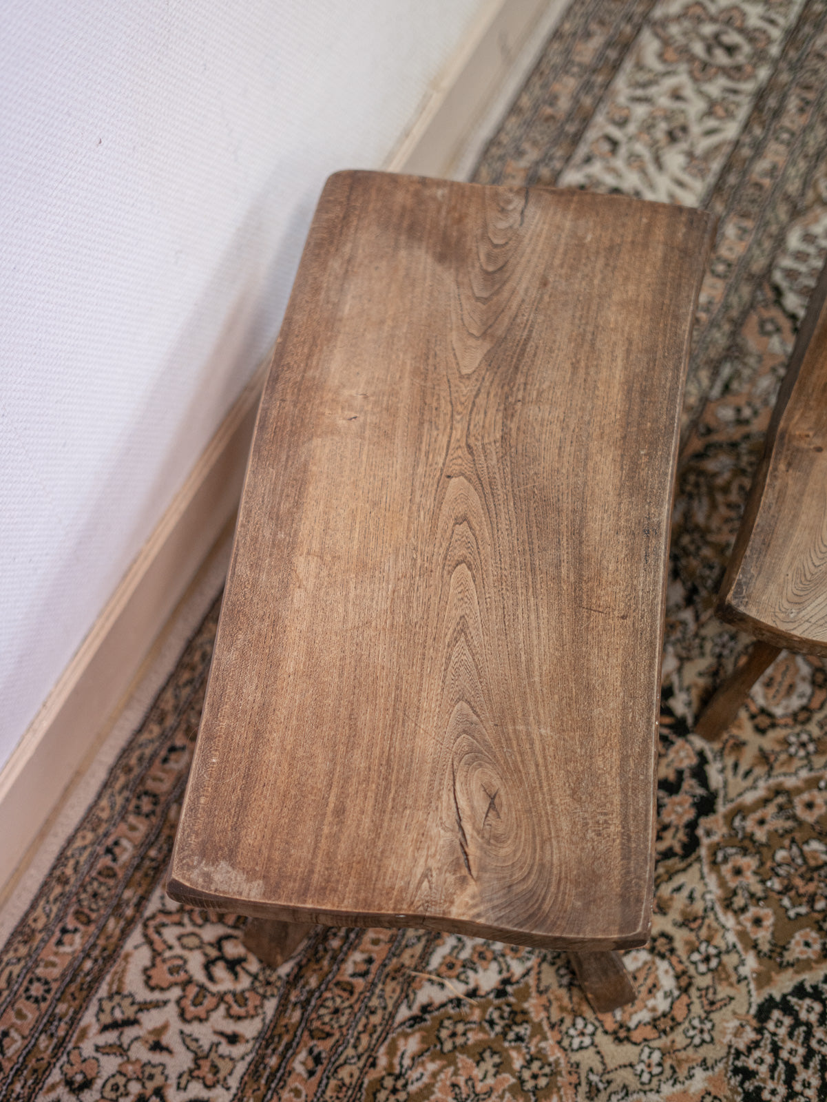 Apportez une note singulière à votre intérieur avec cette paire de petits tabourets en bois au style brutaliste. Massifs et épurés, ils mettent en valeur la beauté de la matière et la simplicité des formes, à l’image du design brutaliste. Confortables et pratiques, ces tabourets trouveront leur place dans une cuisine, un salon ou un coin cosy, séduisant ceux qui aiment le mobilier vintage au charme brut et authentique.