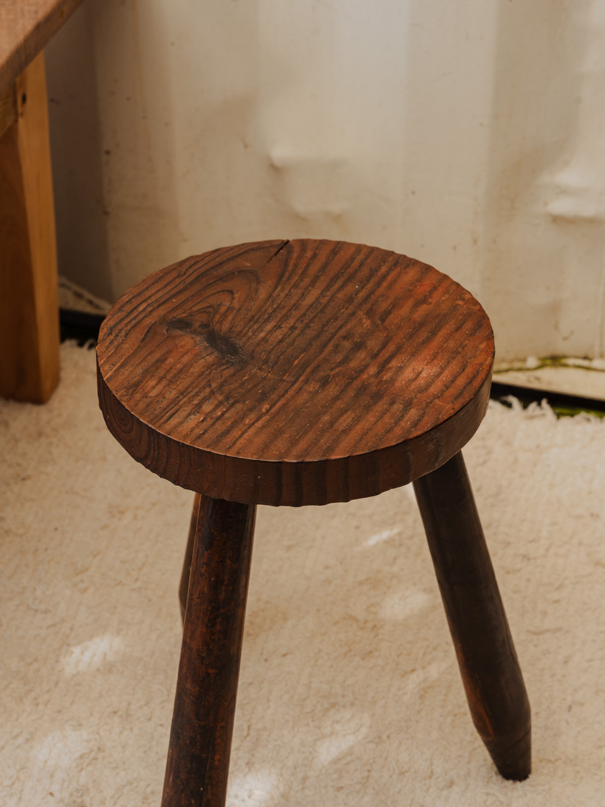 Adoptez ce tabouret en bois au style brut, dont les lignes épurées et la finition naturelle apportent une note chaleureuse et authentique à un intérieur contemporain ou campagne. Il se prête autant à un siège d'appoint près d'une table qu'à un guéridon pour y poser une plante ou un livre, pour un usage polyvalent. Quelques traces du temps présentes.