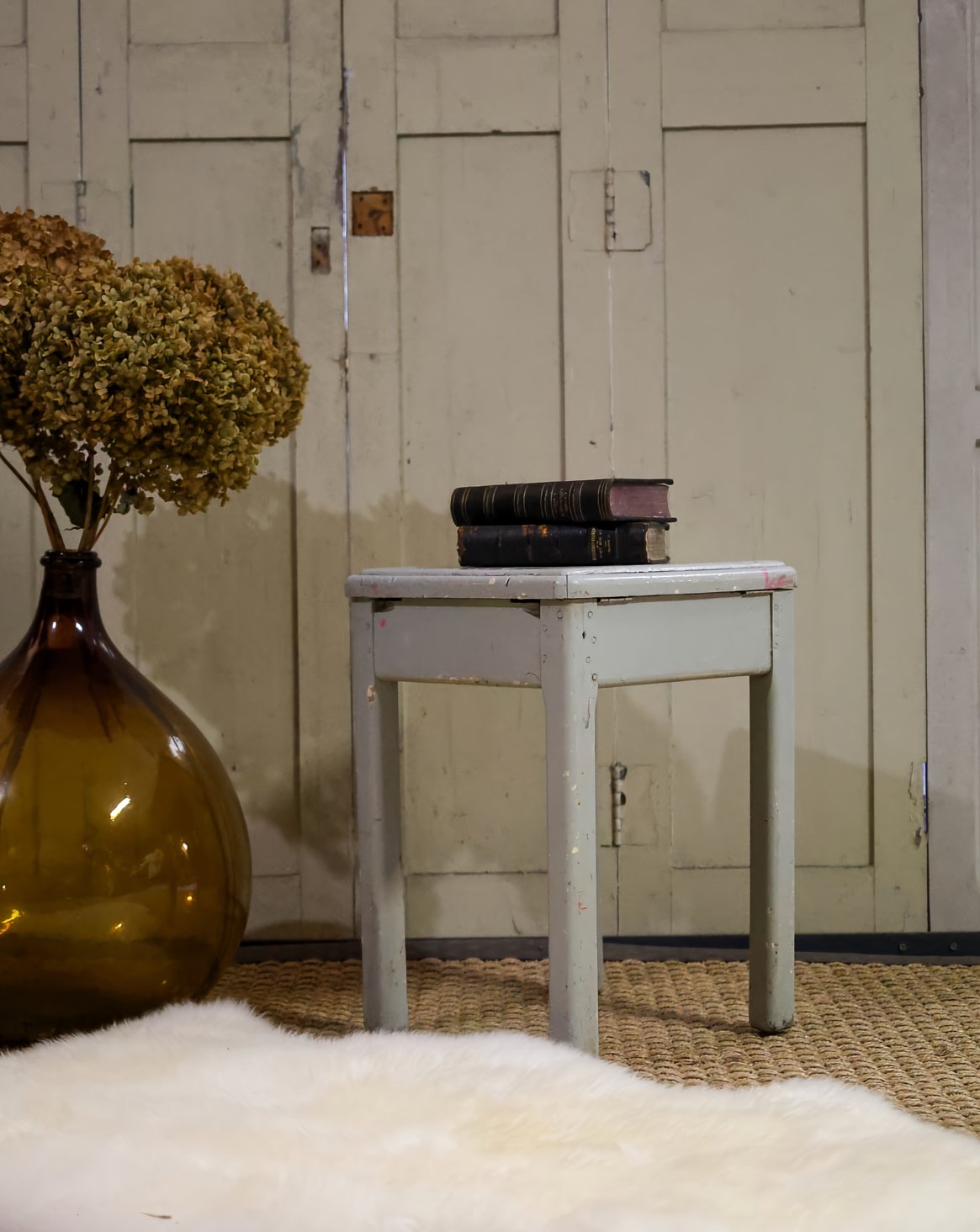 Adoptez ce tabouret vintage en bois patiné gris au charme discret et aux lignes simples, qui apporte une touche chaleureuse à un intérieur contemporain ou scandinave. Son assise qui s'ouvre révèle un petit rangement pratique pour les objets du quotidien, idéal près d'un lit ou en bout de canapé, tandis que la patine offre une belle profondeur de couleur. L'assise carrée et les proportions contenues en font un accessoire facile à intégrer. Quelques taches roses présentes.