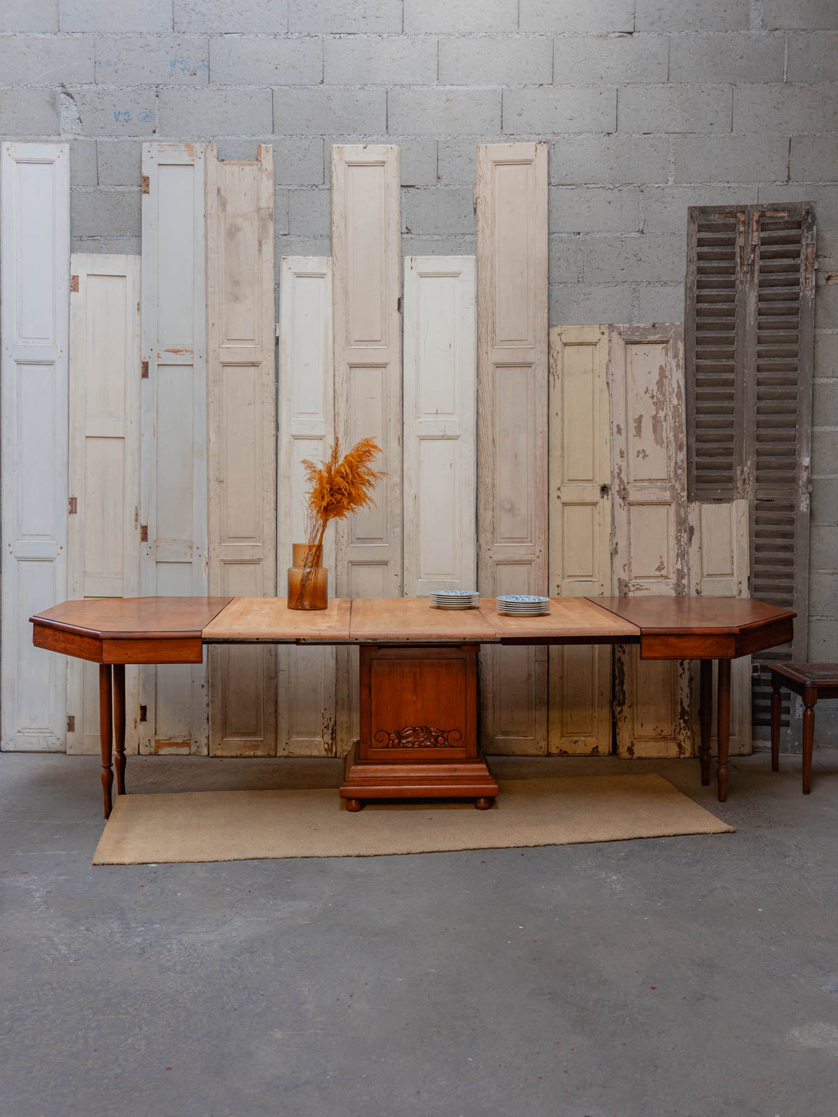 Invitez une table à manger octogonale en bois aux accents chaleureux, pensée pour accueillir de quatre à dix convives selon vos réunions. Son plateau en bois massif dégage une présence naturelle et ses proportions modulables, grâce aux trois rallonges, la rendent aussi pratique pour les dîners intimistes que pour les repas de famille. Sa silhouette géométrique apporte une touche d'élégance sobre et crée une ambiance conviviale autour de la table. Légères traces du temps présentes.