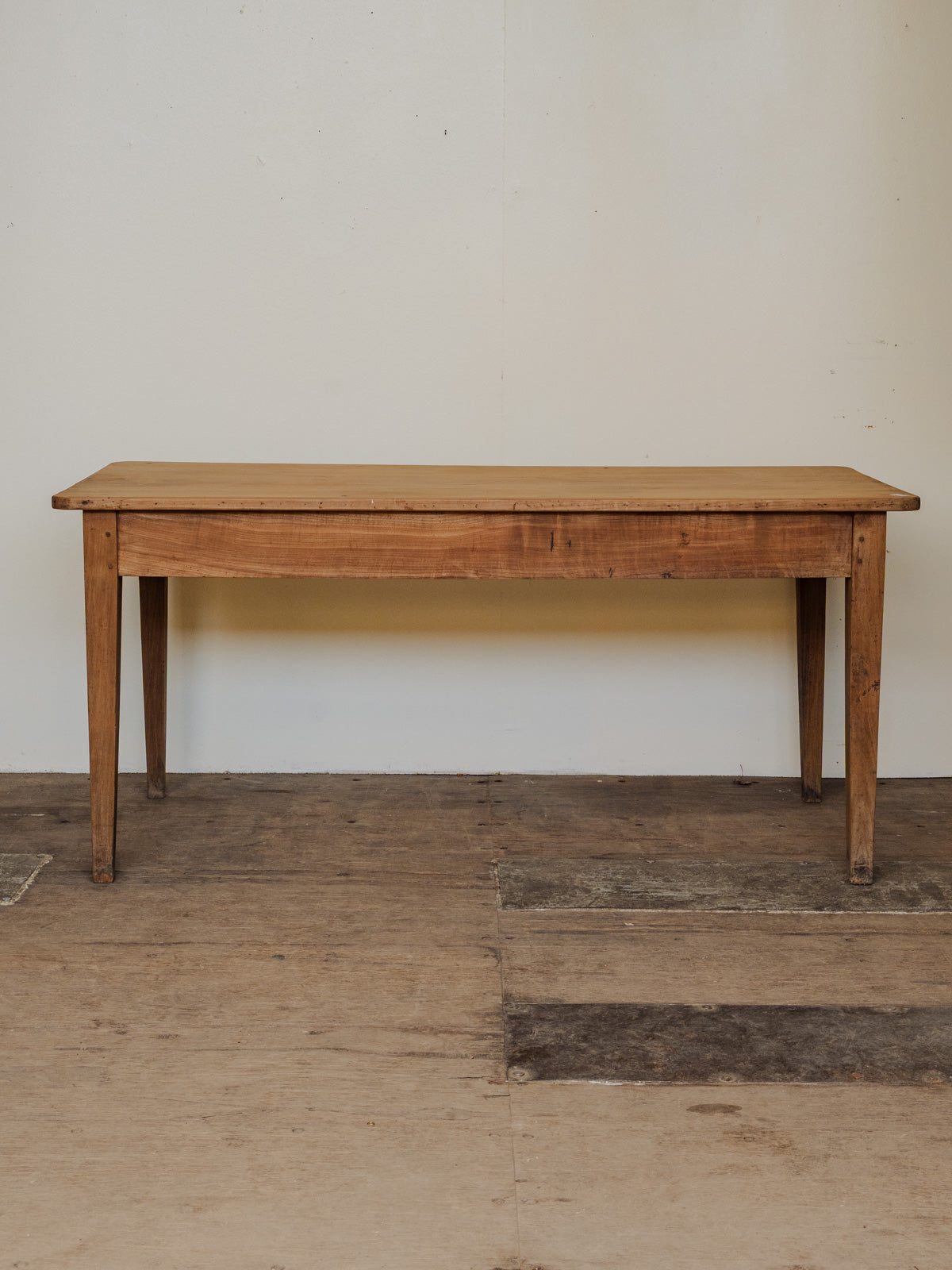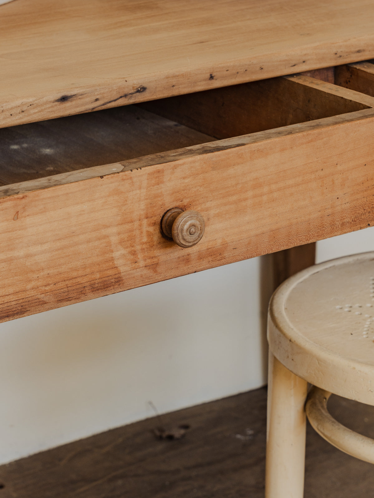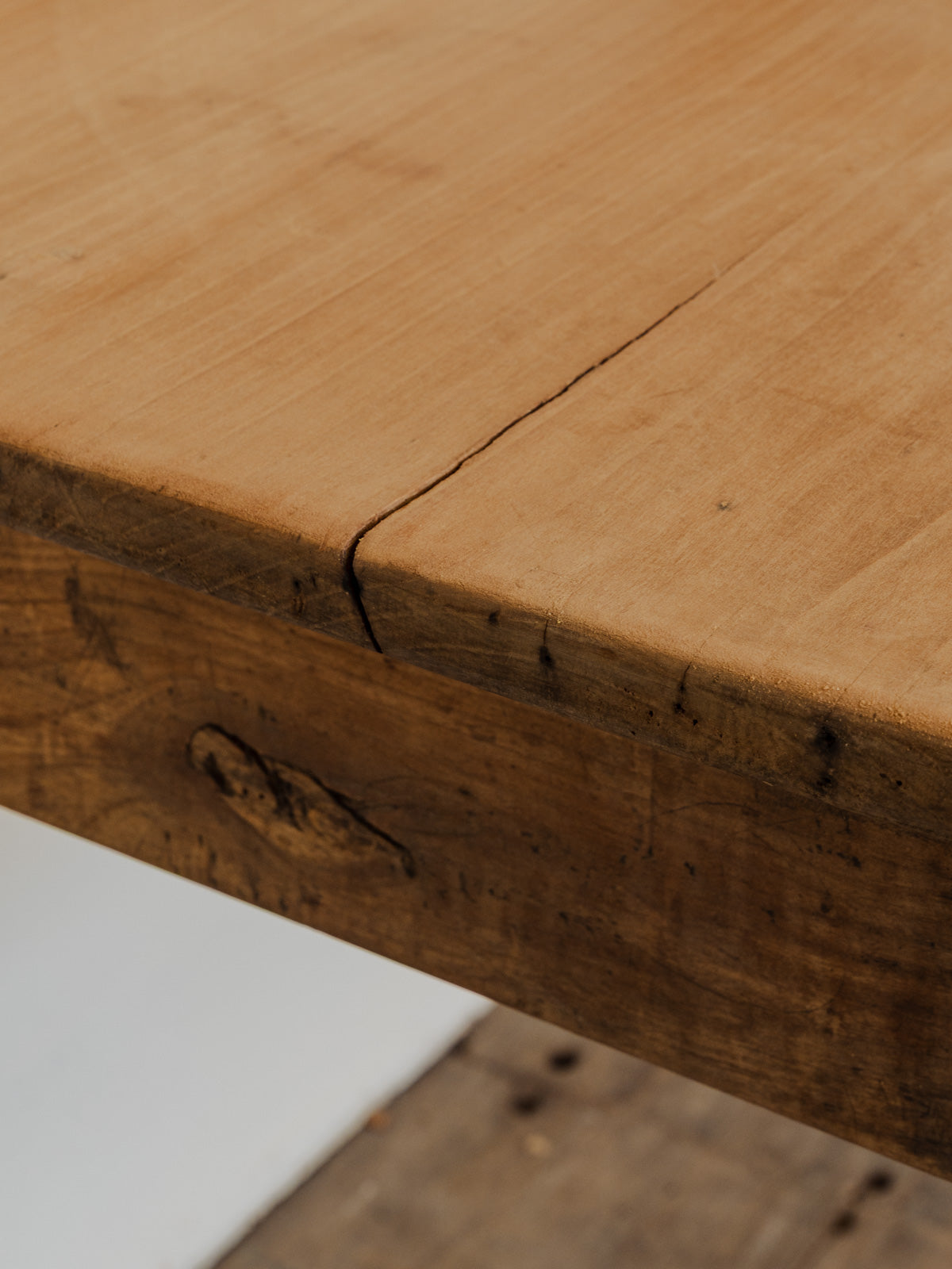 Invitez la douceur d'une ancienne table de couvent en peuplier, pensée pour la cuisine, le travail ou les repas quotidiens. Sa longueur généreuse accueille confortablement quatre à six convives, tandis que ses trois tiroirs intégrés offrent un rangement discret pour ustensiles et papiers. Le bois et les lignes simples instaurent une atmosphère chaleureuse et authentique, idéale pour un intérieur à la fois rustique et épuré. Quelques traces du temps présentes.