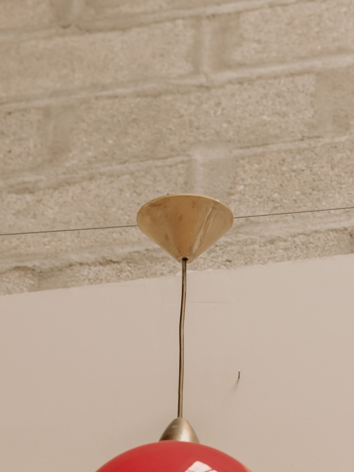 Ajoutez une touche colorée et délicate à votre intérieur avec cette suspension globe en plastique rouge, dont la forme ronde crée un point focal graphique et chaleureux. Suspendue par un fil en métal doré, elle combine légèreté et élégance, idéale en solitaire au-dessus d'une table d'appoint ou en groupe au-dessus d'un bar pour une atmosphère conviviale. Son format compact diffuse une lumière douce qui habille subtilement une chambre, une cuisine ou une entrée.