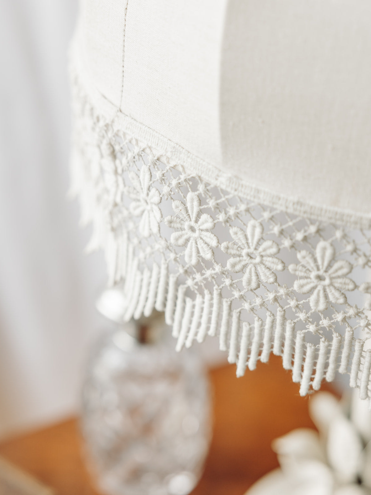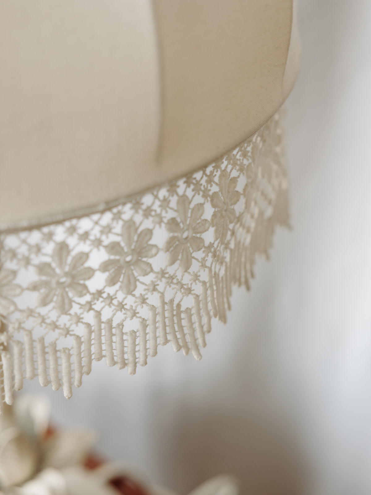 Apportez une touche d'élégance à votre intérieur avec cette lampe à poser en bois et métal blanc, ornée d'un abat-jour en tissu délicat paré de dentelles. Son design raffiné mêle modernité et charme vintage, créant une ambiance chaleureuse dans n'importe quelle pièce. Idéale sur une table de chevet ou un bureau, cette lampe diffuse une lumière douce et apaisante, parfaite pour vos soirées cocooning. Un choix élégant et fonctionnel pour sublimer votre décor.