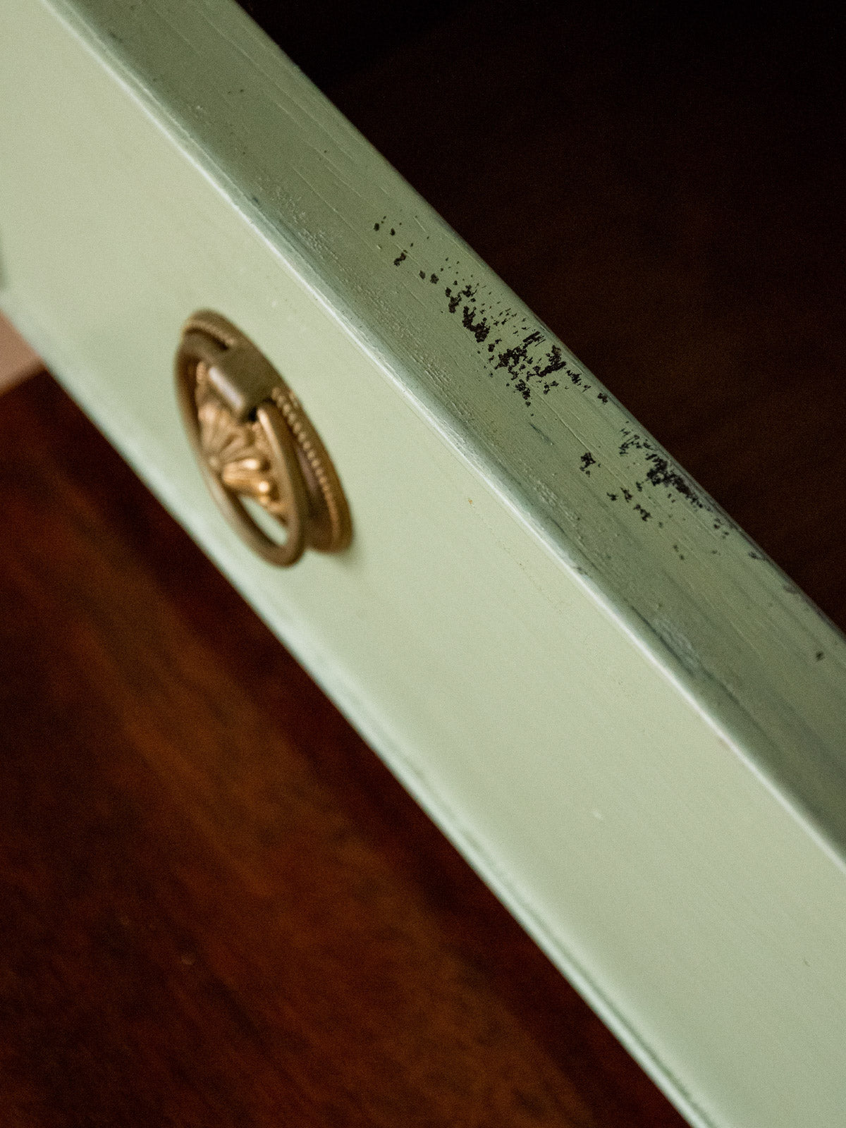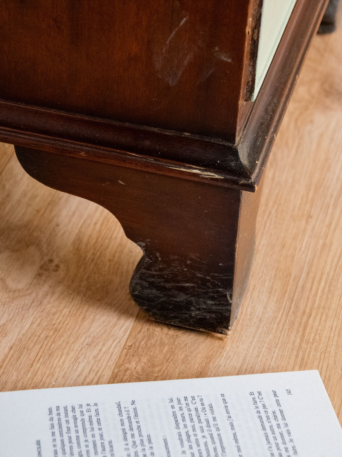 Traces du temps passé à noter sur cet authentique chiffonnier de dame tout droit venu d'Angleterre.