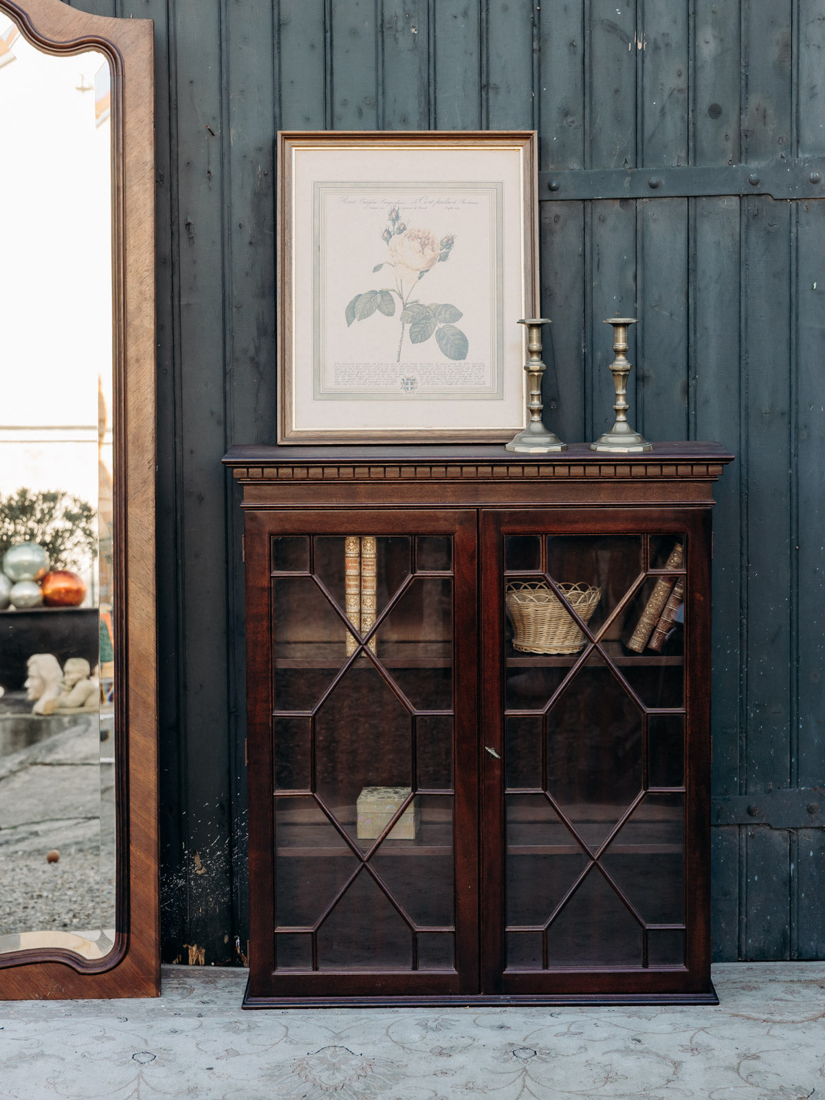 Ajoutez cette petite vitrine en bois foncé aux jolis détails pour une présence discrète et élégante dans votre intérieur. Son profil élancé et sa faible profondeur la rendent idéale pour les espaces restreints, tandis que ses deux étagères en bois réglables offrent une modularité pratique pour vaisselle, objets décoratifs ou livres. La finition chaleureuse et le travail soigné des ornements créent une ambiance raffinée et intime, parfaite pour sublimer une entrée ou un coin salon. Légères usures présentes.
