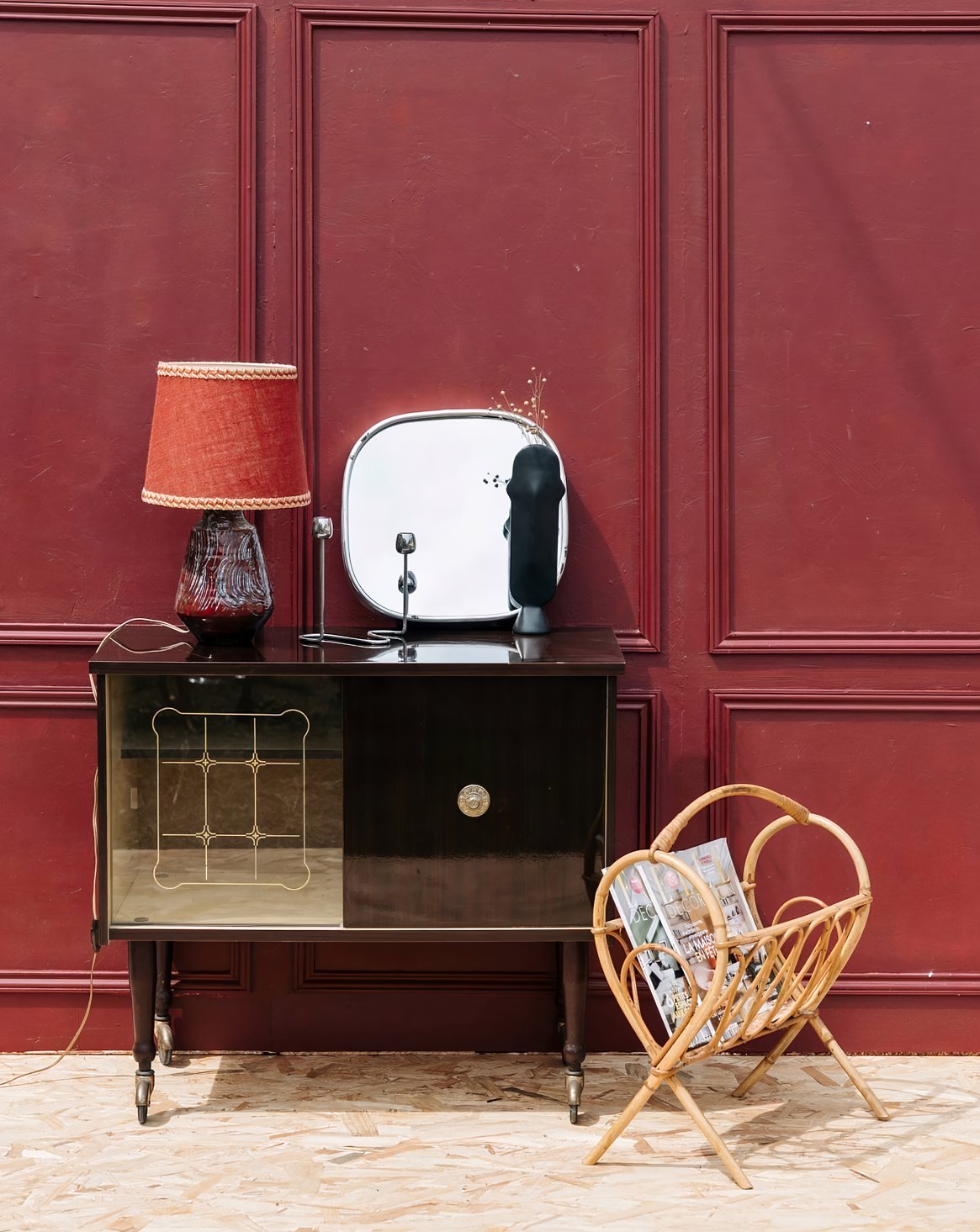 Offrez vous ce meuble bar en bois aux petites roulettes, alliant praticité et élégance. Sa vitrine coulissante met en valeur vos objets préférés tout en ajoutant une touche artistique à votre intérieur. Bien qu'il présente quelques rayures sur le plateau, cela n'altère en rien son charme vintage et son caractère unique. Ce meuble est idéal pour optimiser l'espace et ravir vos invités lors de vos soirées. Un incontournable pour les amateurs de décoration authentique !