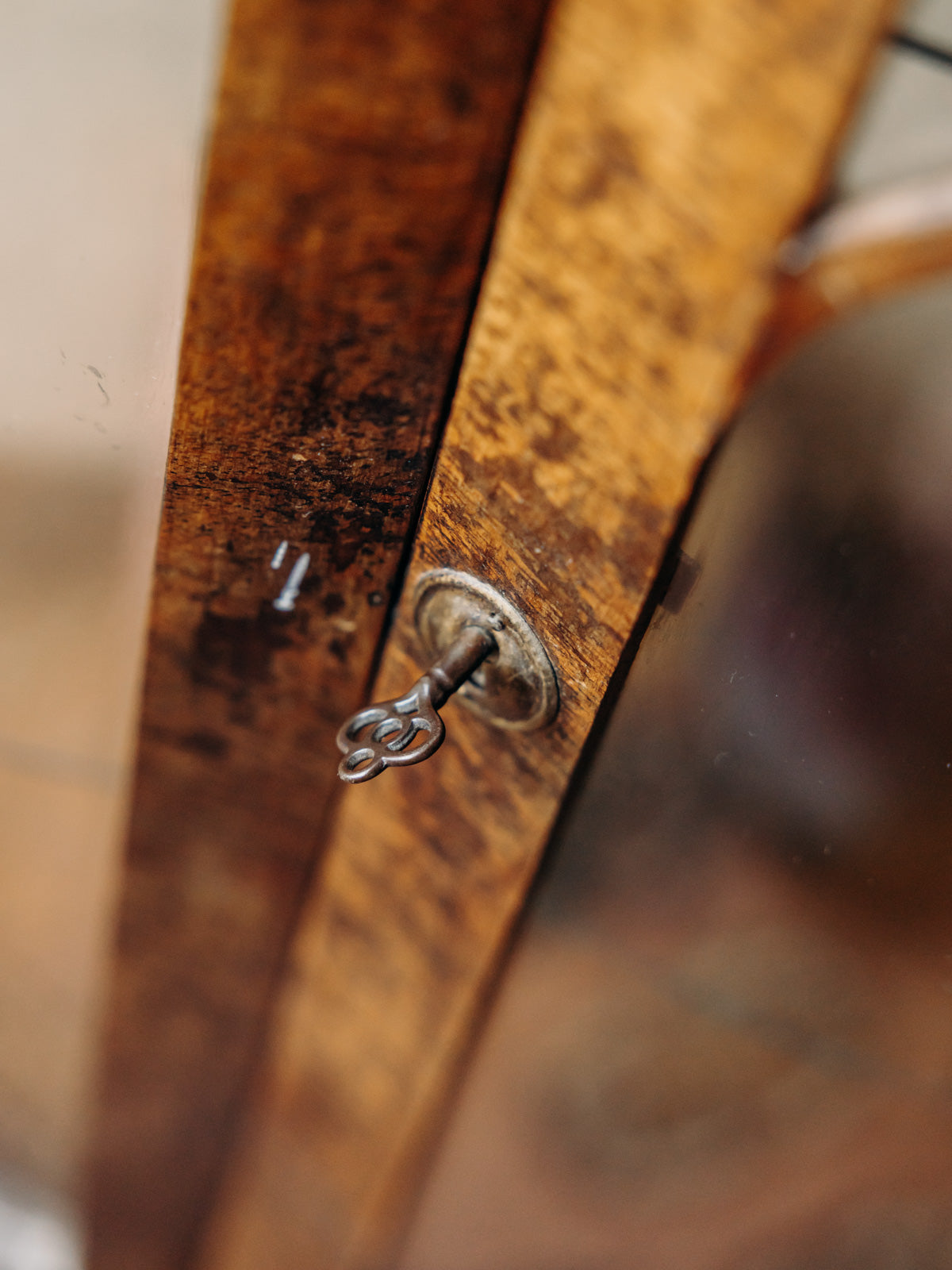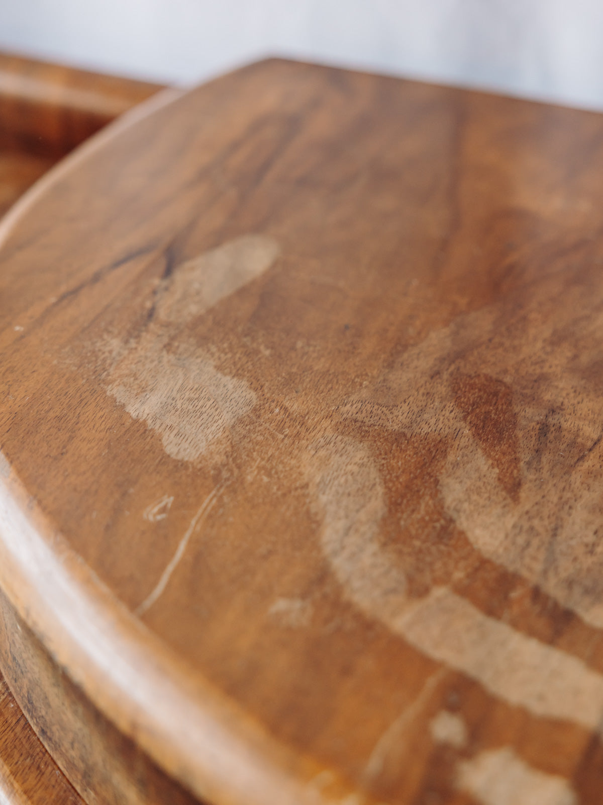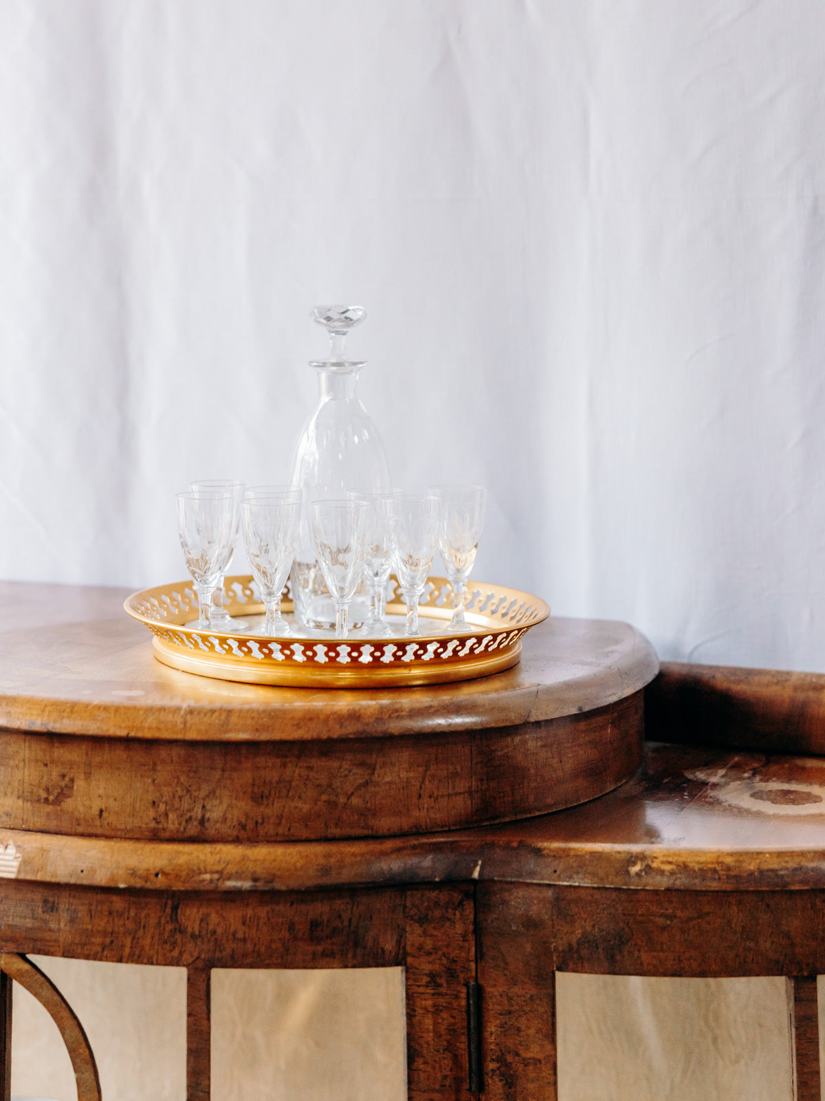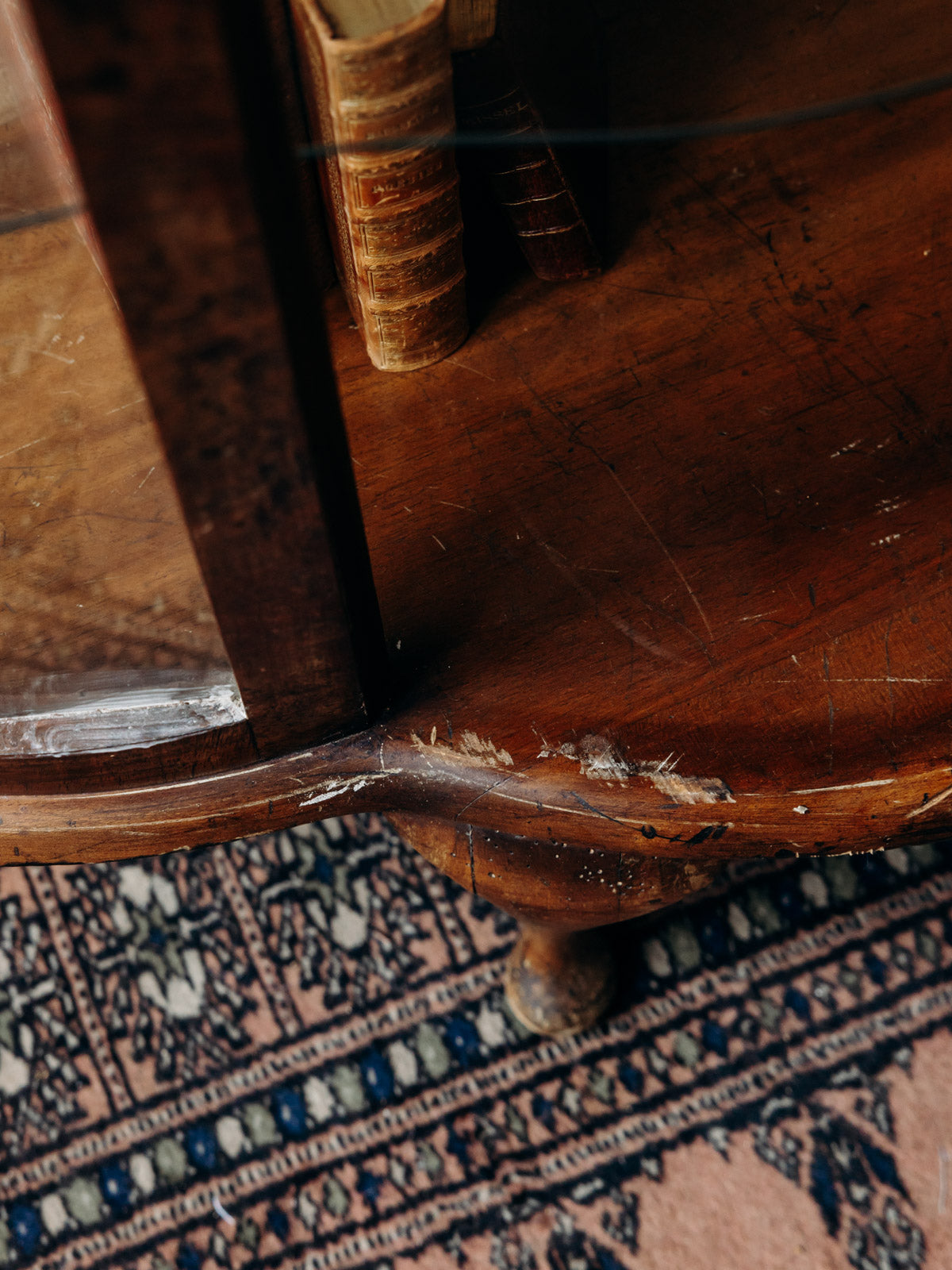 Invitez cette vitrine en bois et verre au design délicat, dotée d'un plateau de jeux rond qui s'ouvre par le dessus sur le plateau supérieur. Ses petits pieds incurvés et ses proportions élancées lui permettent de se glisser dans une entrée ou un coin salon, tandis que ses trois étagères — deux en verre et une en bois — offrent un élégant écrin pour vos objets et collections. Le mariage de la transparence des plateaux et de la chaleur du bois instaure une atmosphère raffinée et conviviale. Petit défaut de placage à l'avant et taches d'eau sur le plateau.